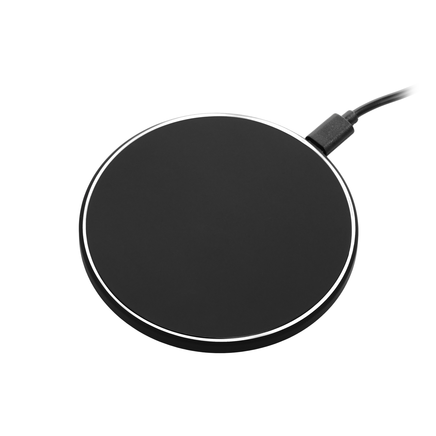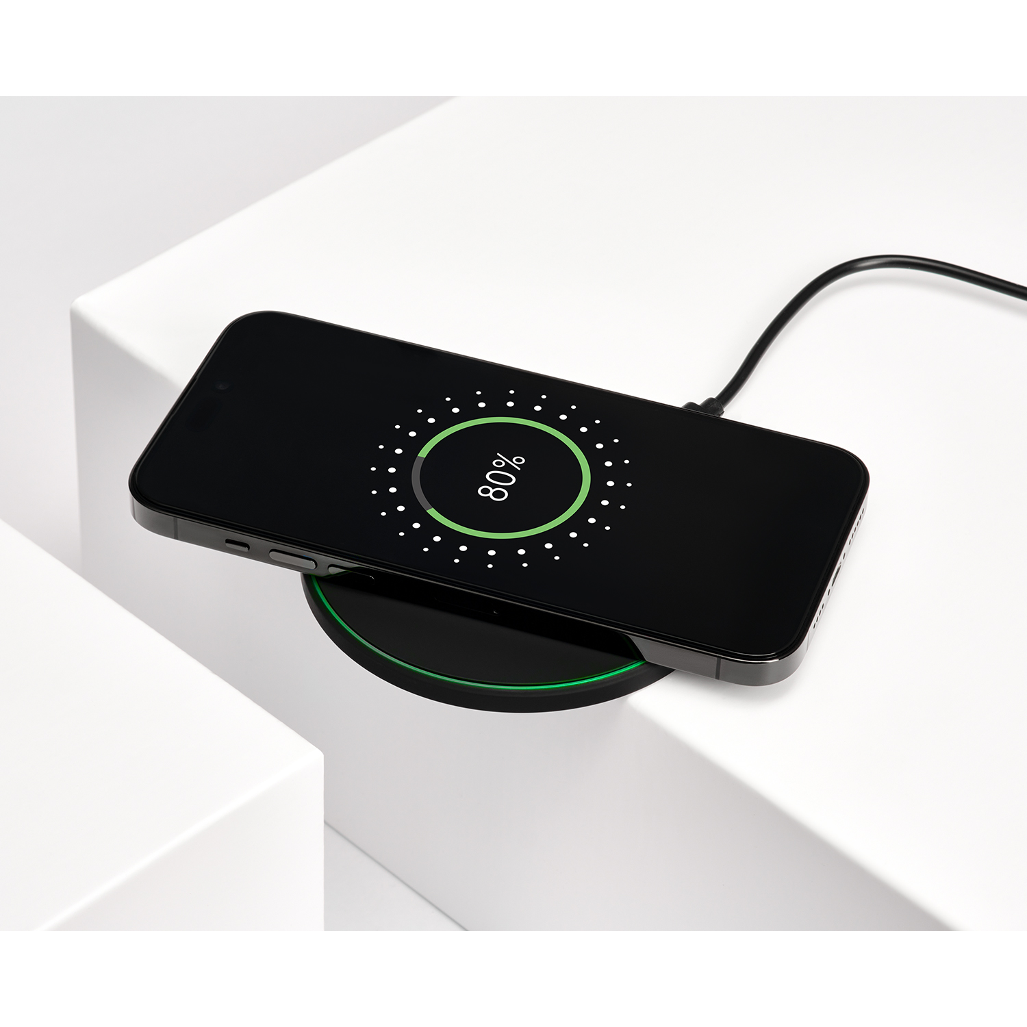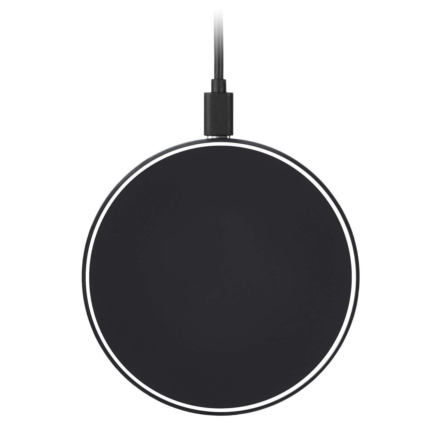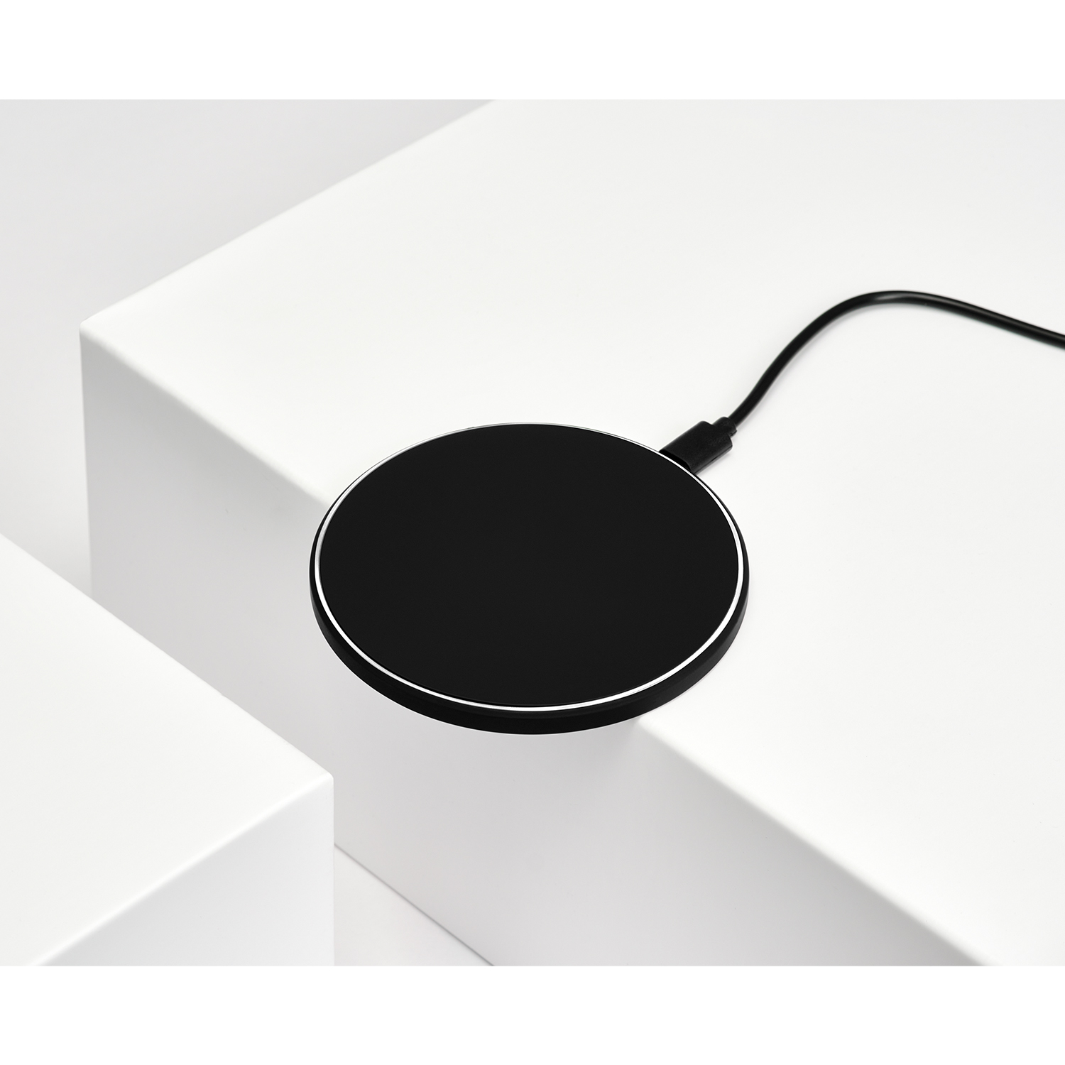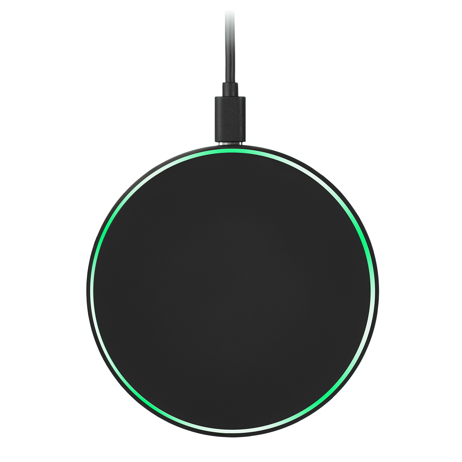 Беспроводное зарядное устройство 15W с подсветкой и покрытием soft-touch. Встроенная LED-панель позволяет создать эффектную подсветку логотипа посредством лазерной гравировки, удачно завершая композицию аксессуара.