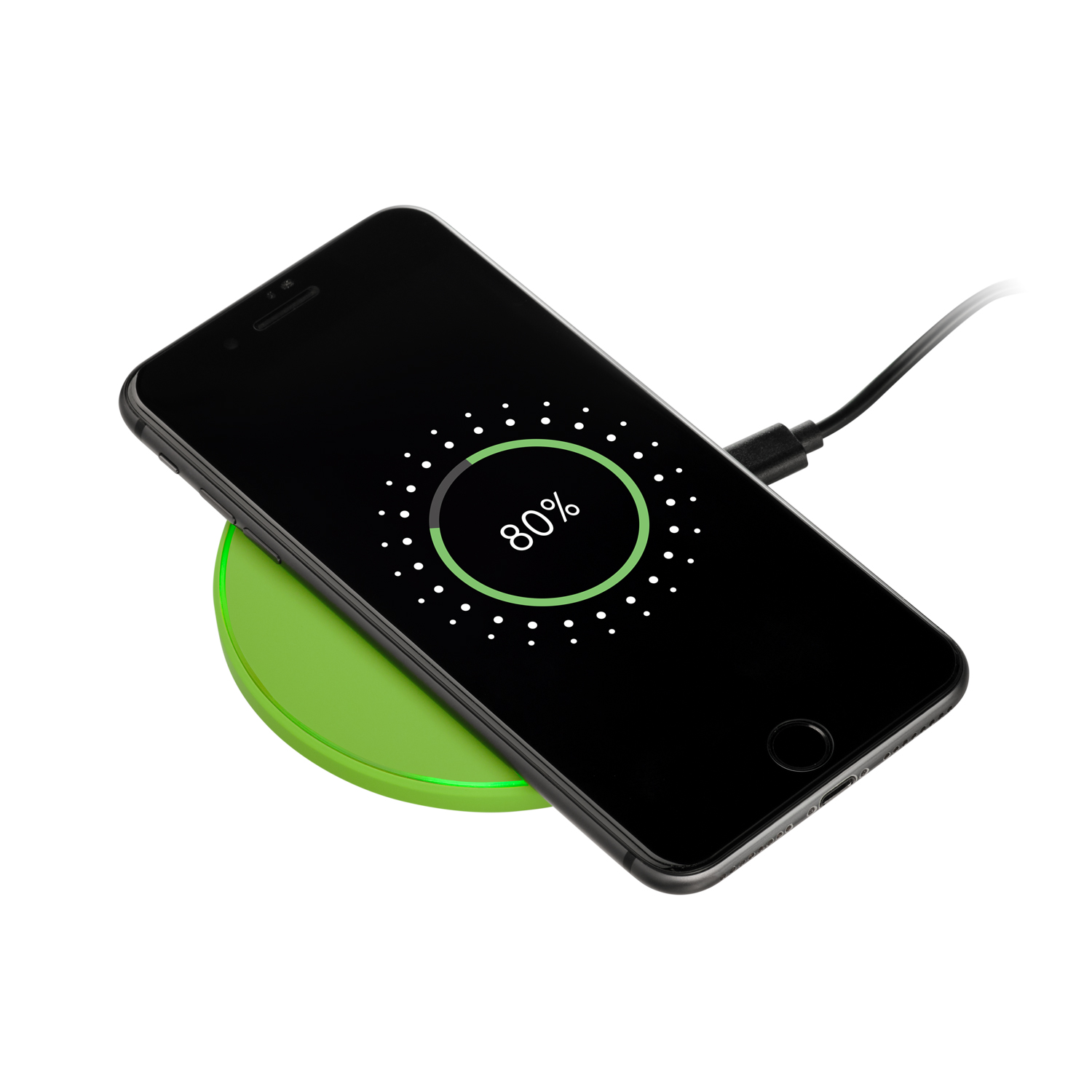Беспроводное зарядное устройство 15W с подсветкой и покрытием soft-touch. Встроенная LED-панель позволяет создать эффектную подсветку логотипа посредством лазерной гравировки, удачно завершая композицию аксессуара.