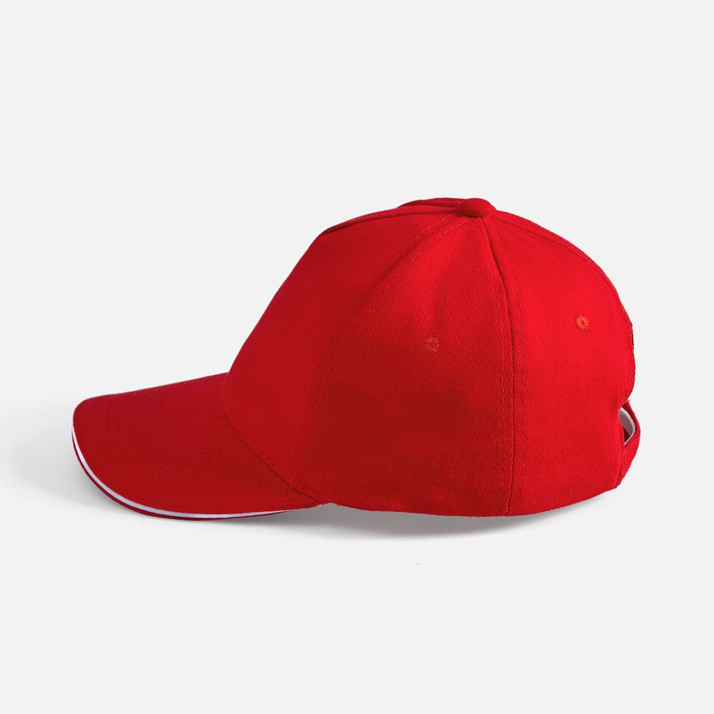 Модель бейсболки с 5-ю клиньями без лобового шва из плотного чесаного хлопка.