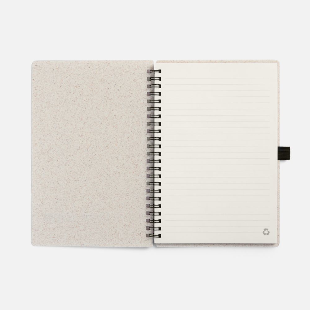 Блокнот на спирали из пшеничной соломы с резинкой для ручки.
