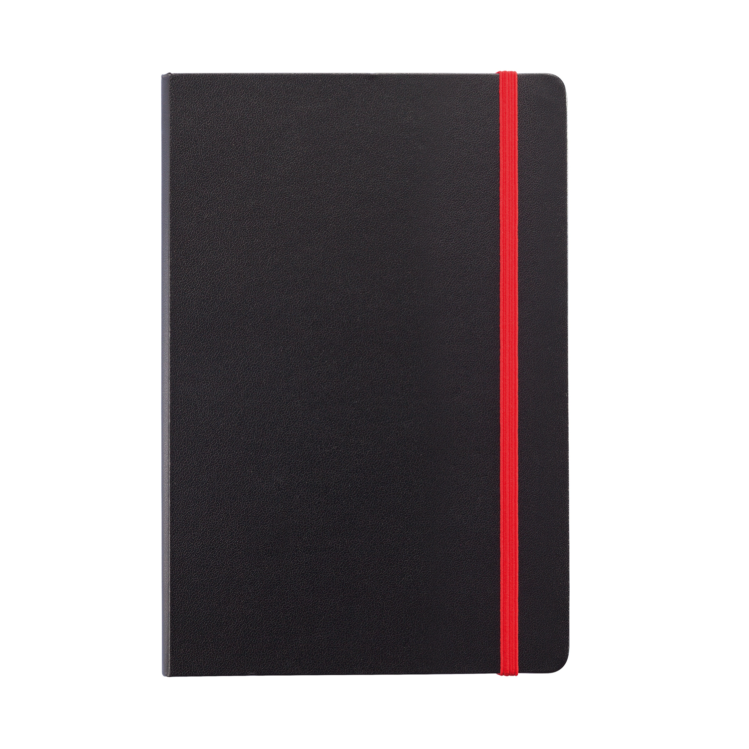Стильный блокнот формата А5 в твердой обложке. 80 страниц, бумага плотностью 80 г/м2. цветной срез и цвет резинки в тон.