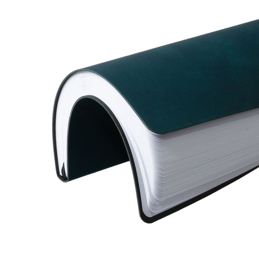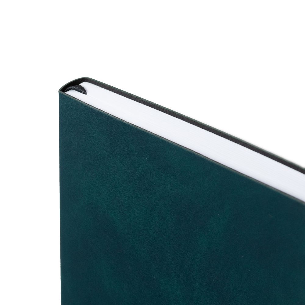 Ежедневник с гибкой обложкой, выполнен из материала Nubuck Touch, зеленый FF, дополнен ляссе и петлей-резинкой для ручки черного цвета.