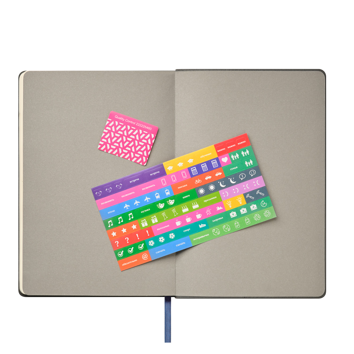 Мягкий на ощупь материал с мелкими вкраплениями имитирует натуральную замшу, а петелька для ручки добавляет практичности. Сдержанные оттенки обложки, форзаца и нахзаца гармонично сочетаются между собой.