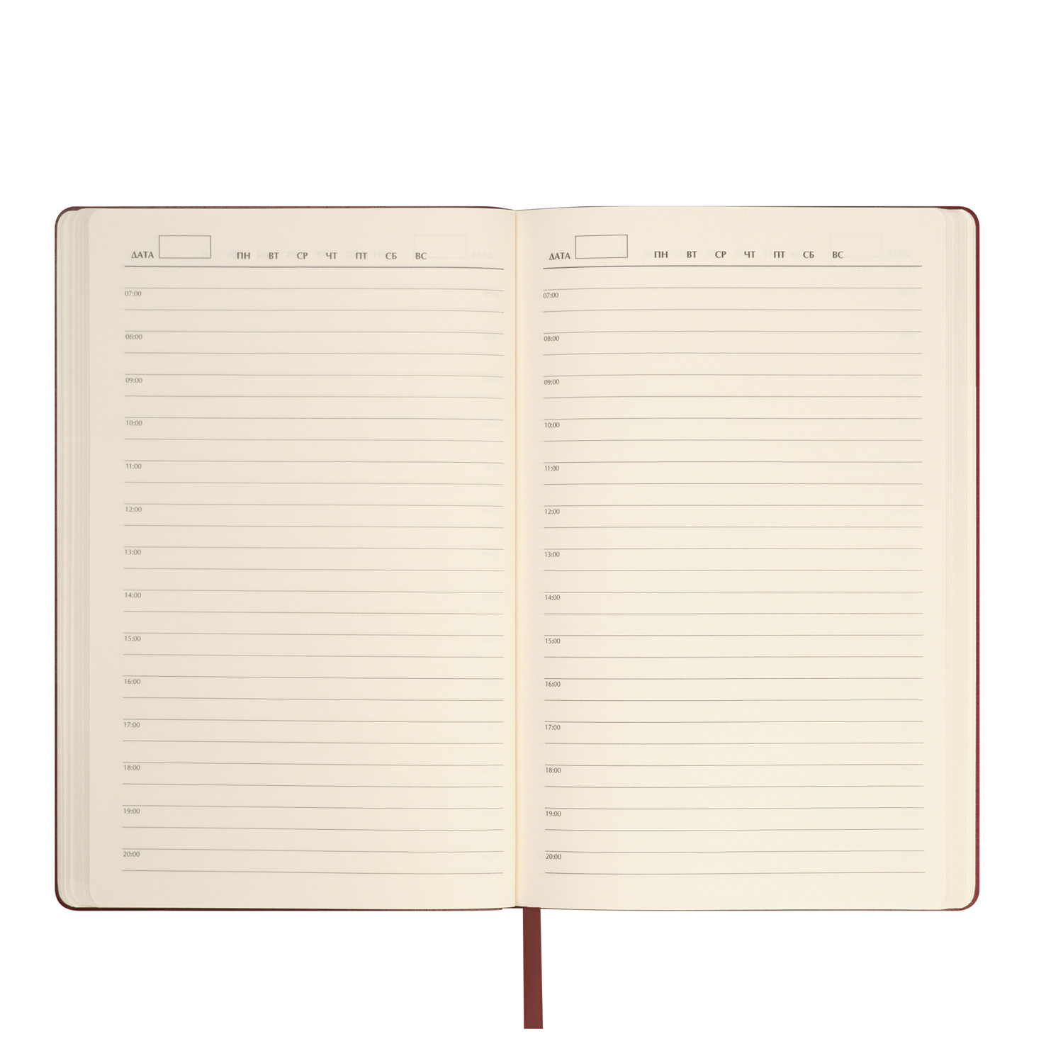 Кремовые форзацы и гладкие шелковистые страницы из офсета со скругленными уголками обеспечат максимальный комфорт при письме. Элегантное атласное ляссе поможет быстро найти нужную страницу. Этот ежедневник — воплощение изысканной простоты и практичности.