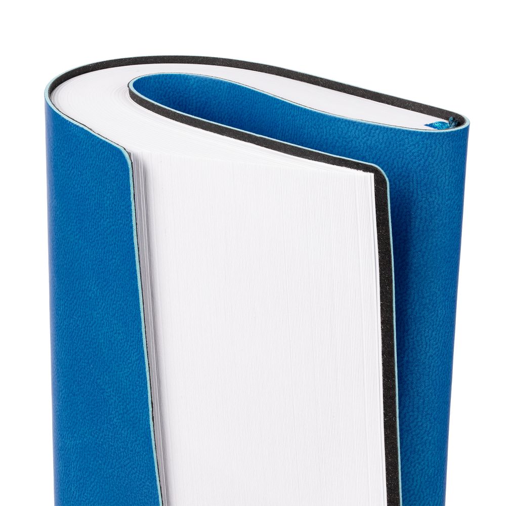 Ежедневник с гибкой обложкой, выполнен из материала Latte, синий НН, дополнен резинкой шириной 1 см, капталом и ляссе синего цвета.