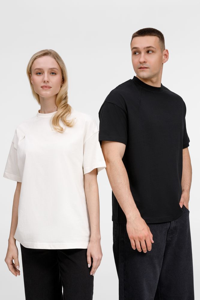 Футболка унисекс свободного кроя с круглым воротом из высококачественного полотна джерси.- Горловина выполнена резинкой 1х1