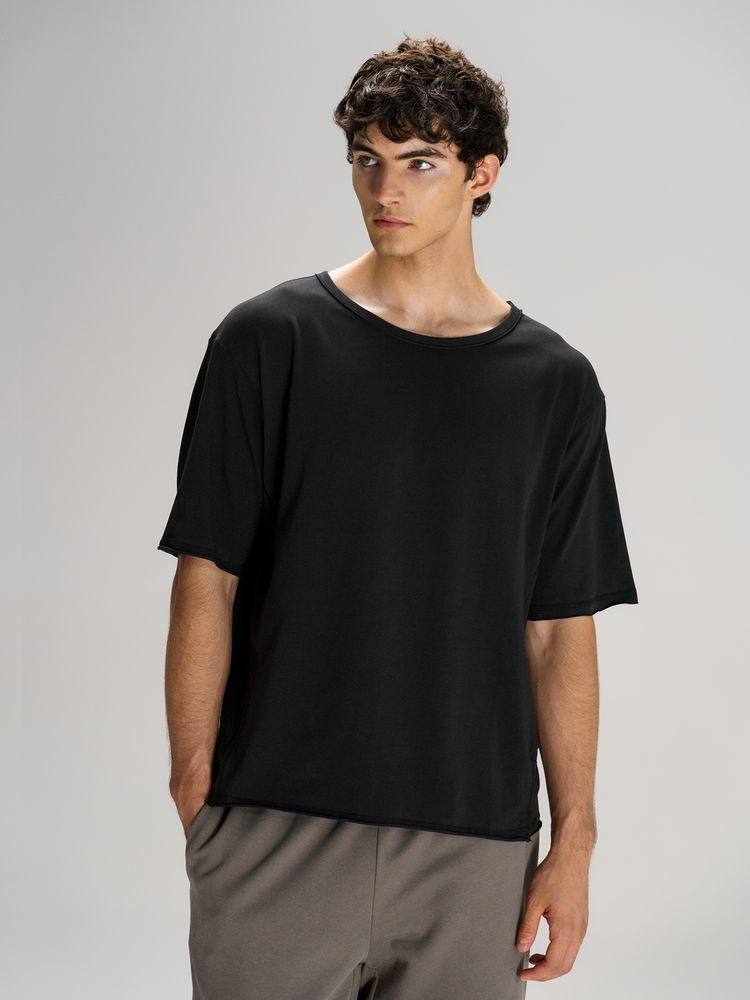 Футболка унисекс свободной посадки Vozduh создана для тех, кто следит за трендами и ценит комфорт. Необработанные края рукавов и низа изделия добавляют ему оригинальности и легкой небрежности, а боковые вставки создают притягательный летящий силуэт.