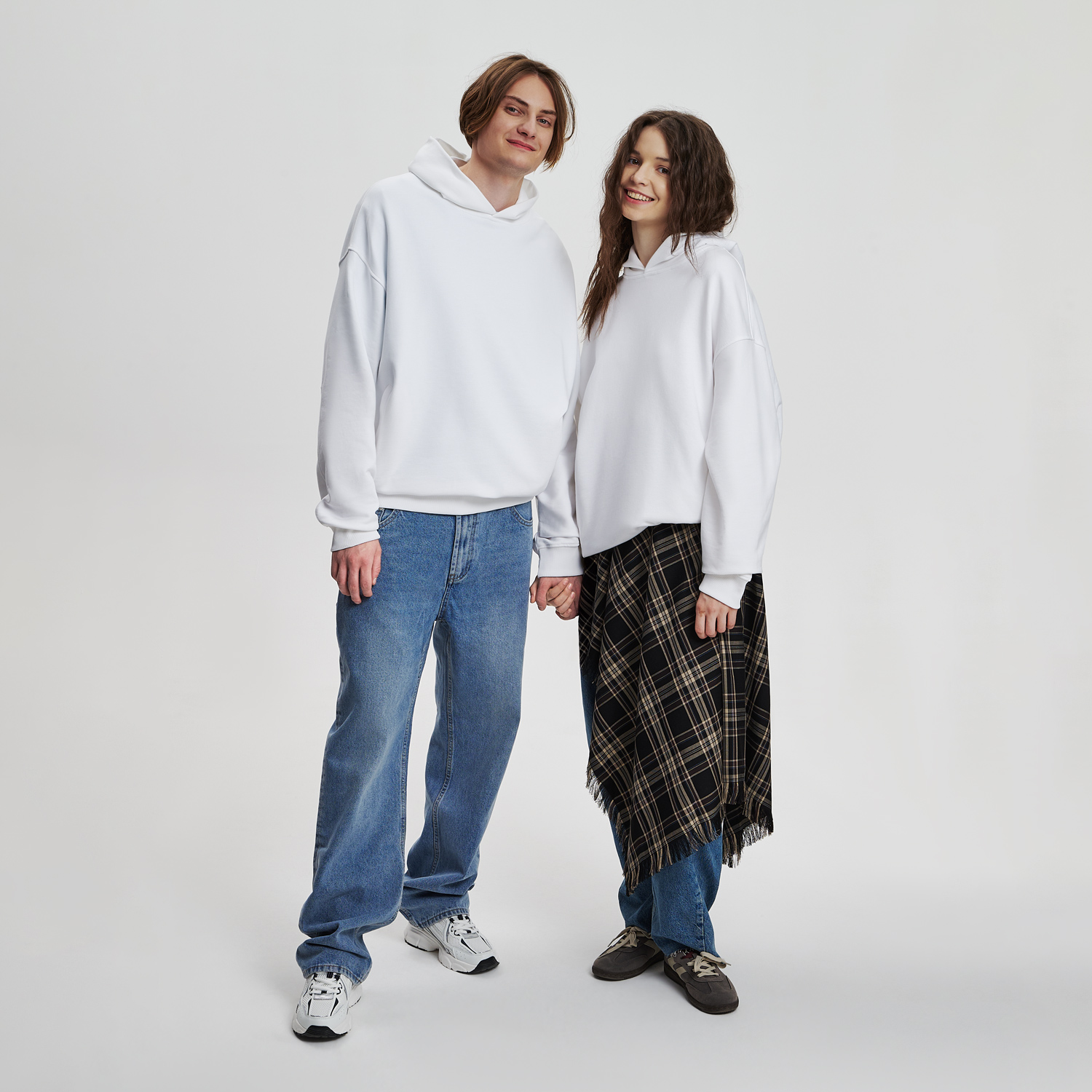 Модель выполнена из высококачественного хлопкового футера плотностью 380 г/м. Объёмная, но мягкая ткань комфортна для ежедневной носки.
