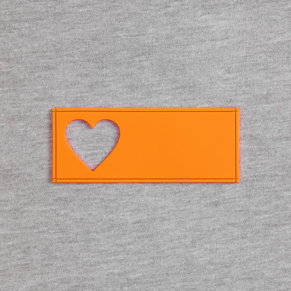 - сделать нанесение на изделии, поверх которого нашить лейбл так, чтобы вырубка стала частью целостного и уникального дизайна.