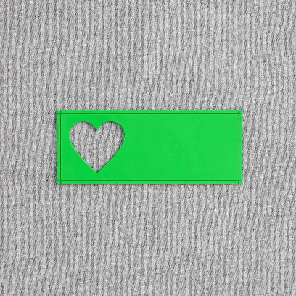 - сделать нанесение на изделии, поверх которого нашить лейбл так, чтобы вырубка стала частью целостного и уникального дизайна.