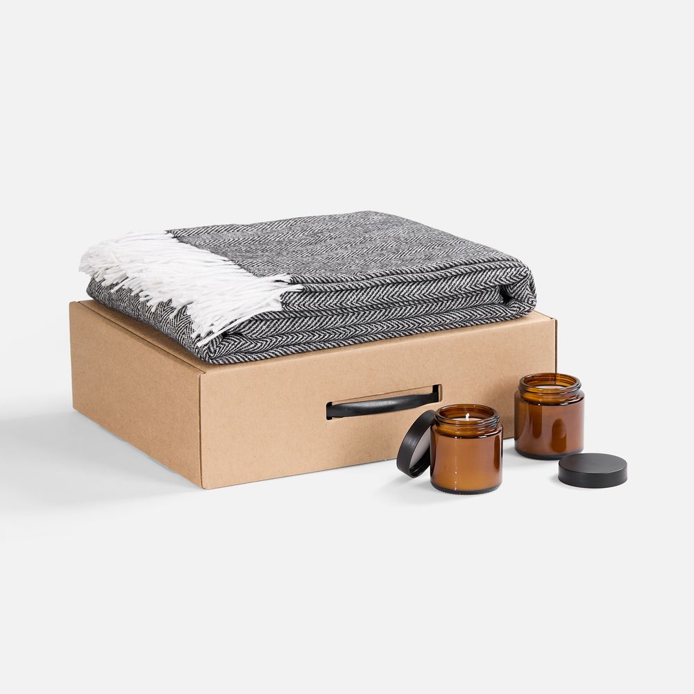 Мягкий плед с нежной бахромой станет идеальным спутником для расслабляющих вечеров и придаст стильный облик любому интерьеру. Две ароматические свечи в элегантных стеклянных баночках мягко наполнят пространство расслабляющим светом и тонким ароматом, добавляя нотки спокойствия и гармонии.