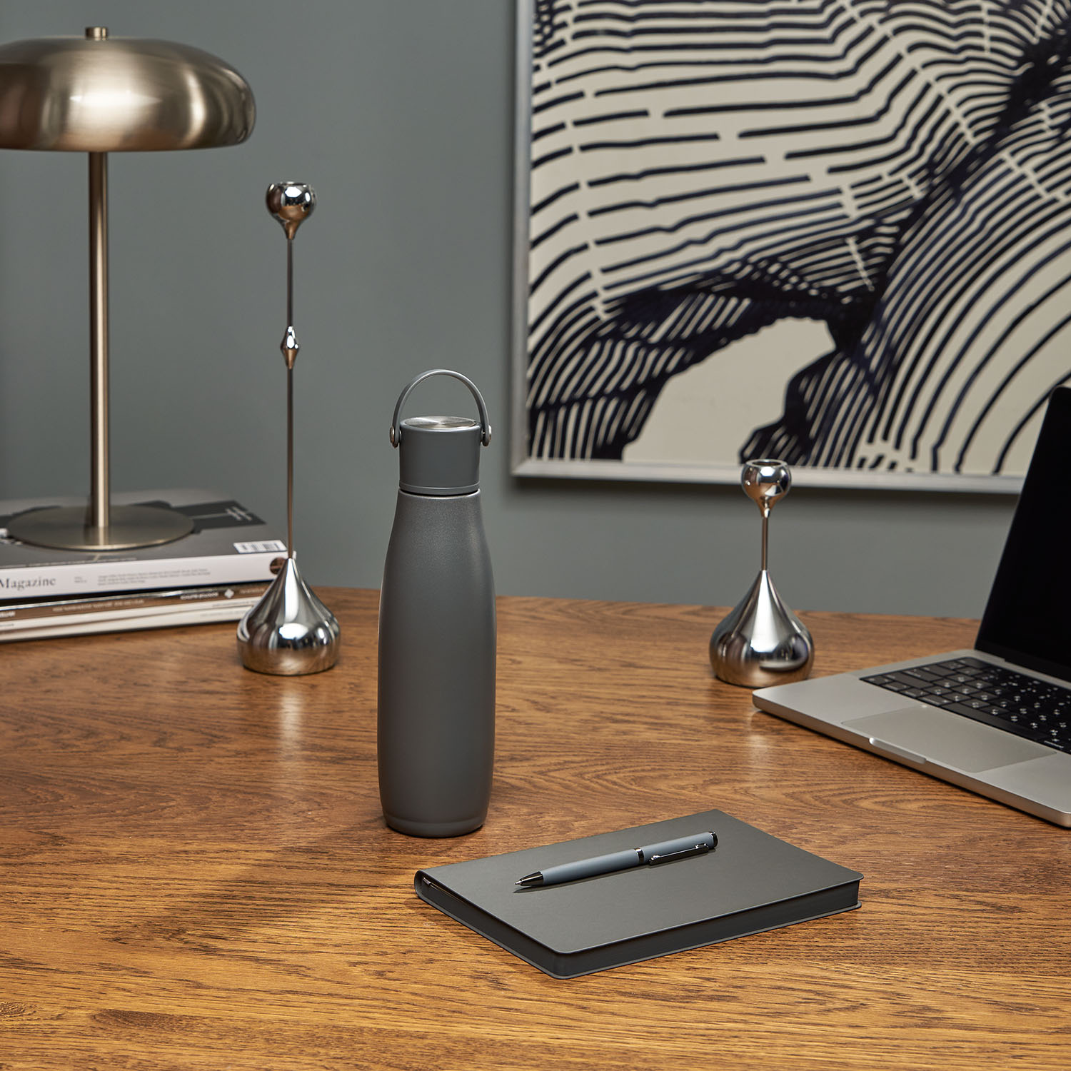 Термобутылка Bosca объемом 480 мл — современный дизайн и практичность в каждом элементе. Обтекаемая форма удобно ложится в руку, а крышка с надежной конструкцией и удобной ручкой делает переноску максимально комфортной.
