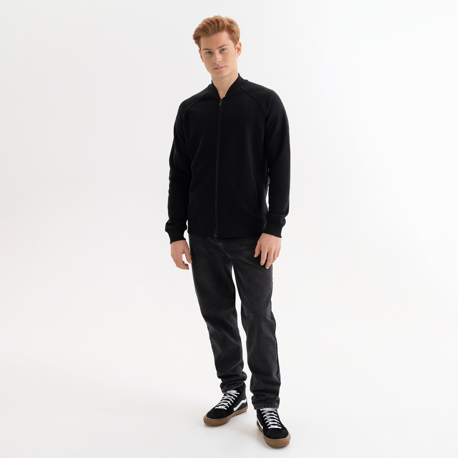 Стильная толстовка бомбер унисекс на реверсной молнии свободного силуэта с прорезными карманами в рамку.