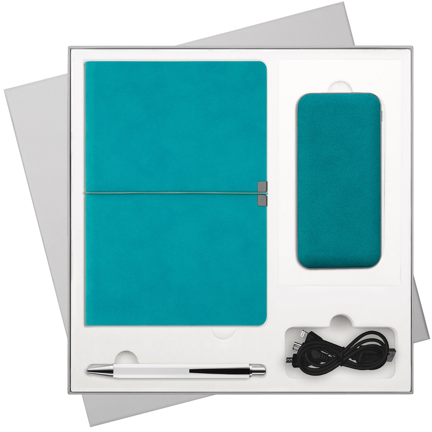 Подарочный набор In Velour, бирюзовый (ежедневник, ручка, аккумулятор)