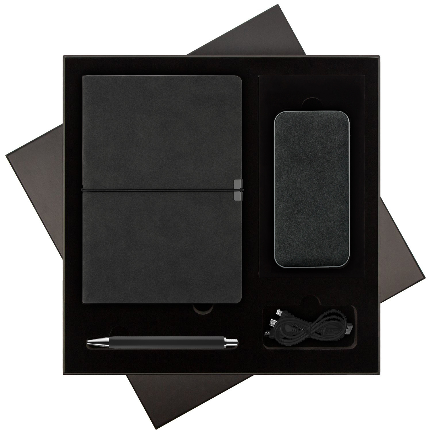 Подарочный набор In Velour, черный (ежедневник, ручка, аккумулятор)