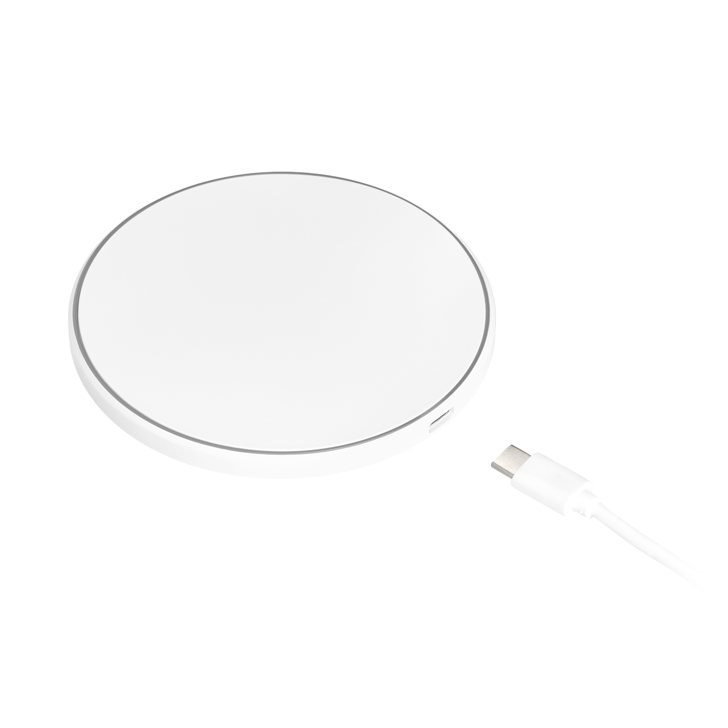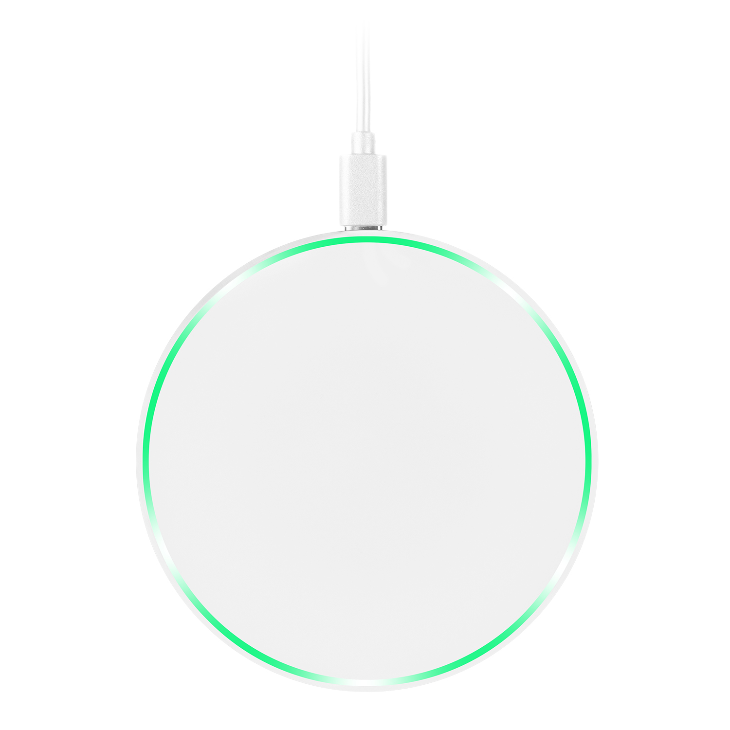 Беспроводное зарядное устройство 15W с подсветкой и покрытием soft-touch. Встроенная LED-панель позволяет создать эффектную подсветку логотипа посредством лазерной гравировки, удачно завершая композицию аксессуара.