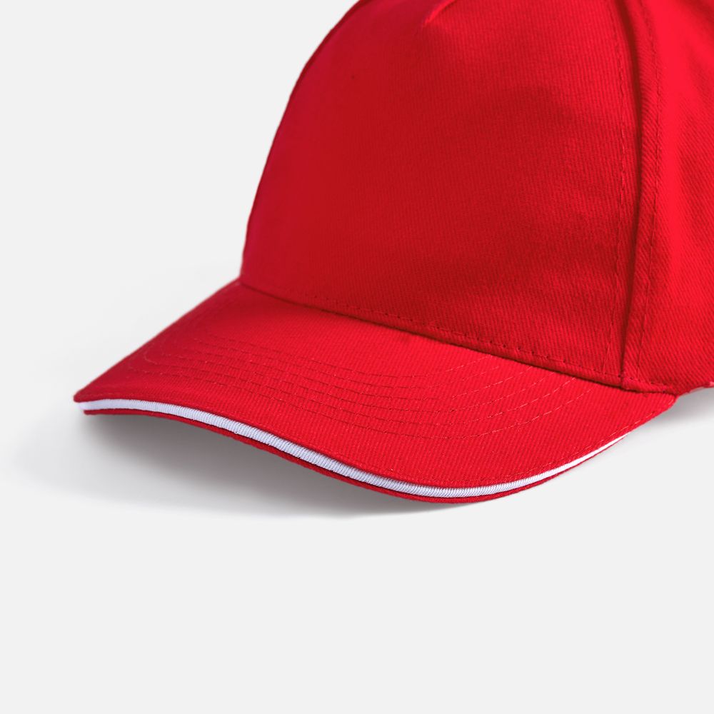 Модель бейсболки с 5-ю клиньями без лобового шва из плотного чесаного хлопка.