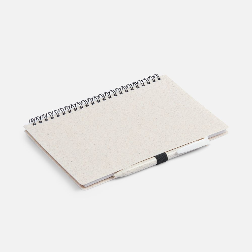 Блокнот на спирали из пшеничной соломы с резинкой для ручки.