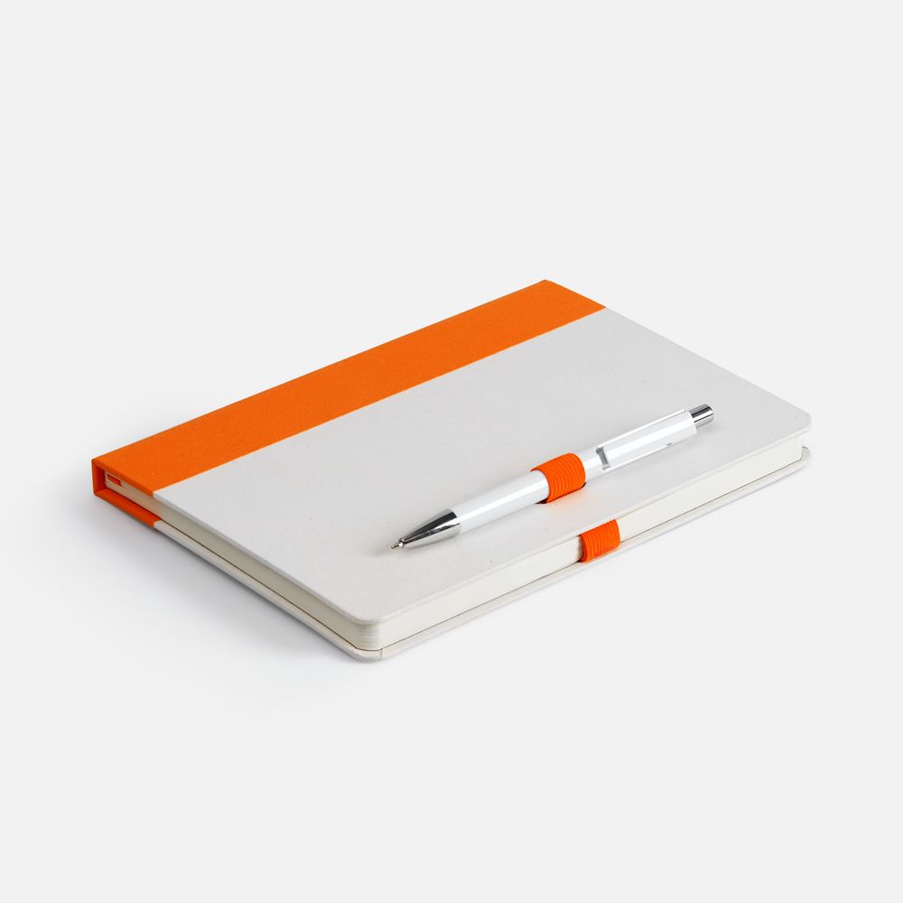 Бумага и обложка произведены из переработанных пакетов из под молока. Обложка из картона плотностью 140 г/м² .Блок в линейку: