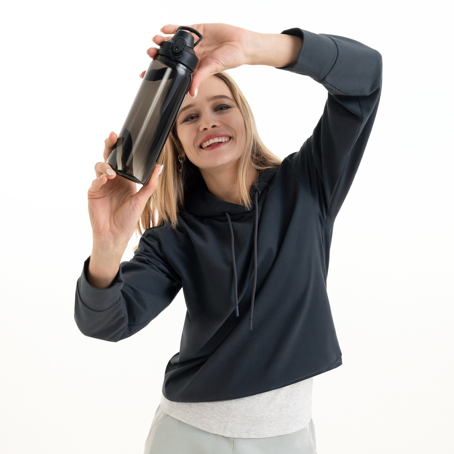 Благодаря универсальному размеру бутылку удобно брать с собой, положив в небольшую сумку или рюкзак. Рифленая вставка на крышке обеспечивает надежный захват и препятствует скольжению, а пластиковая ручка сделает доступным комфортную переноску.