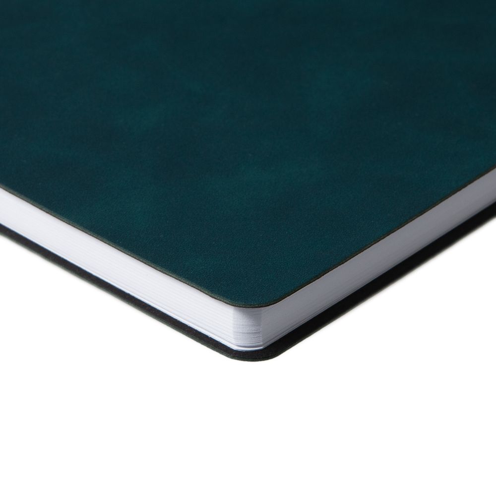 Ежедневник с гибкой обложкой, выполнен из материала Nubuck Touch, зеленый FF, дополнен ляссе и петлей-резинкой для ручки черного цвета.
