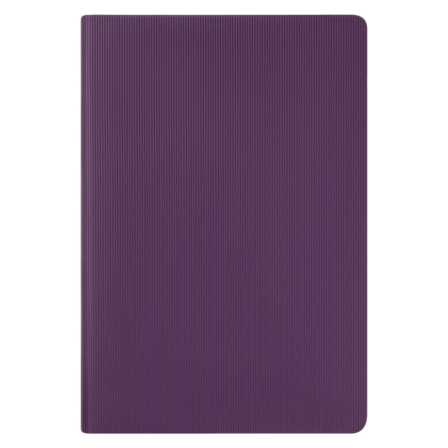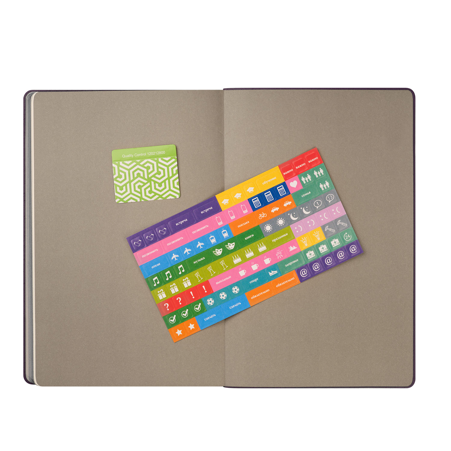 Недатированный ежедневник отличается современным технологичным дизайном и оригинальным цветовым ансамблем. Гибкая матовая обложка со скругленными уголками выполнена из искусственной кожи, имитирующей покрытие в стиле Hi-Tech. Переплетный материал с вертикальным рифлением, бархатистый, со слегка прорезиненным эффектом. За счет интересной рельефной фактуры прослеживается игра цвета при перемене освещения. Цвет – фиолетовый, насыщенный, плотный, однородный. Создает органичный природный тандем с матовыми форзацем и нахзацем серого цвета. Срез матовый, в тон обложки. Страницы со скругленными уголками приятного глазу теплого светло-кремового цвета. Выполнены из гладкого шелковистого офсета. Ежедневник дополнен двойным атласным ляссе из лент серого и фиолетового цветов, имеющих глянцевый отлив.