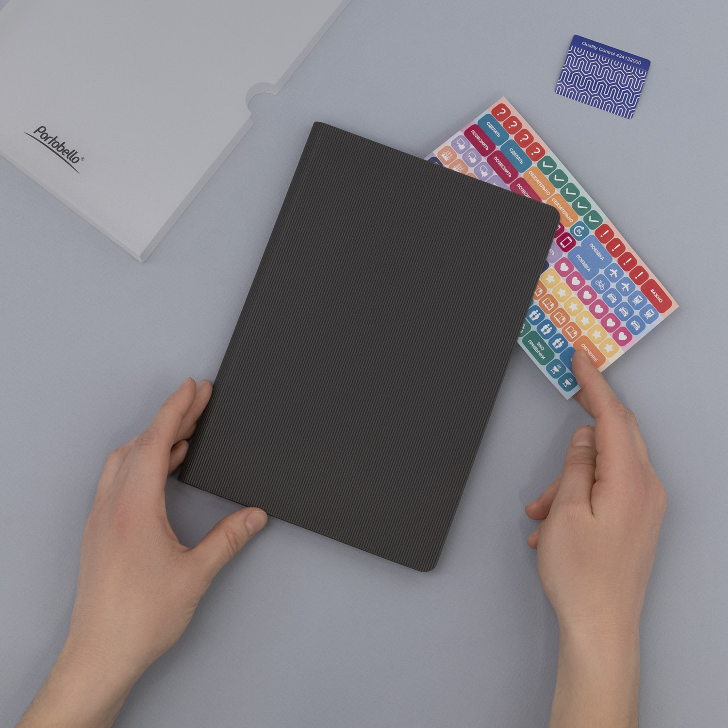 Ежедневник Rain обладает гибкой матовой обложкой из искусственной кожи с эффектом Hi-Tech. Вертикальное рифление и бархатистая, слегка прорезиненная поверхность создают изысканную игру цвета при разном освещении.