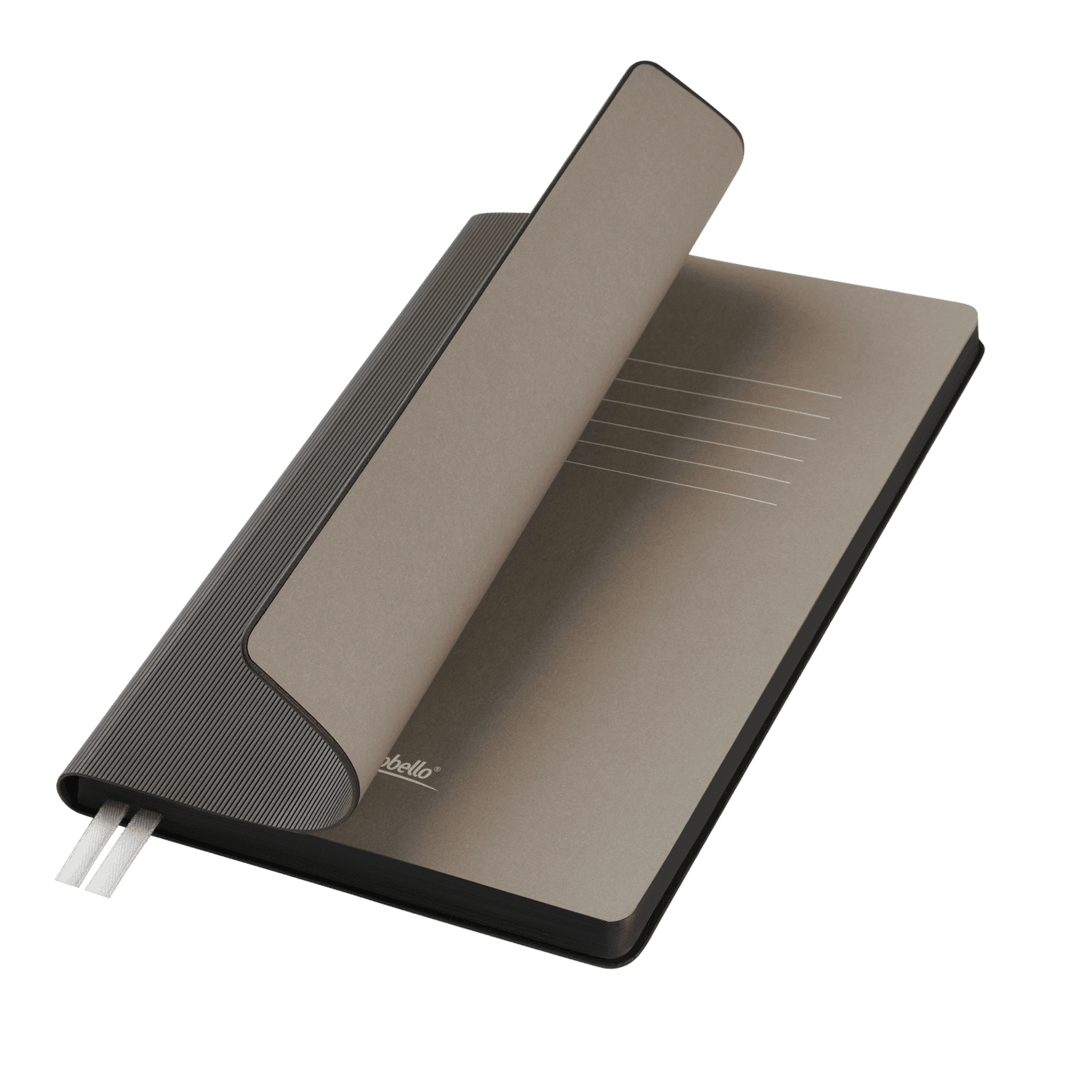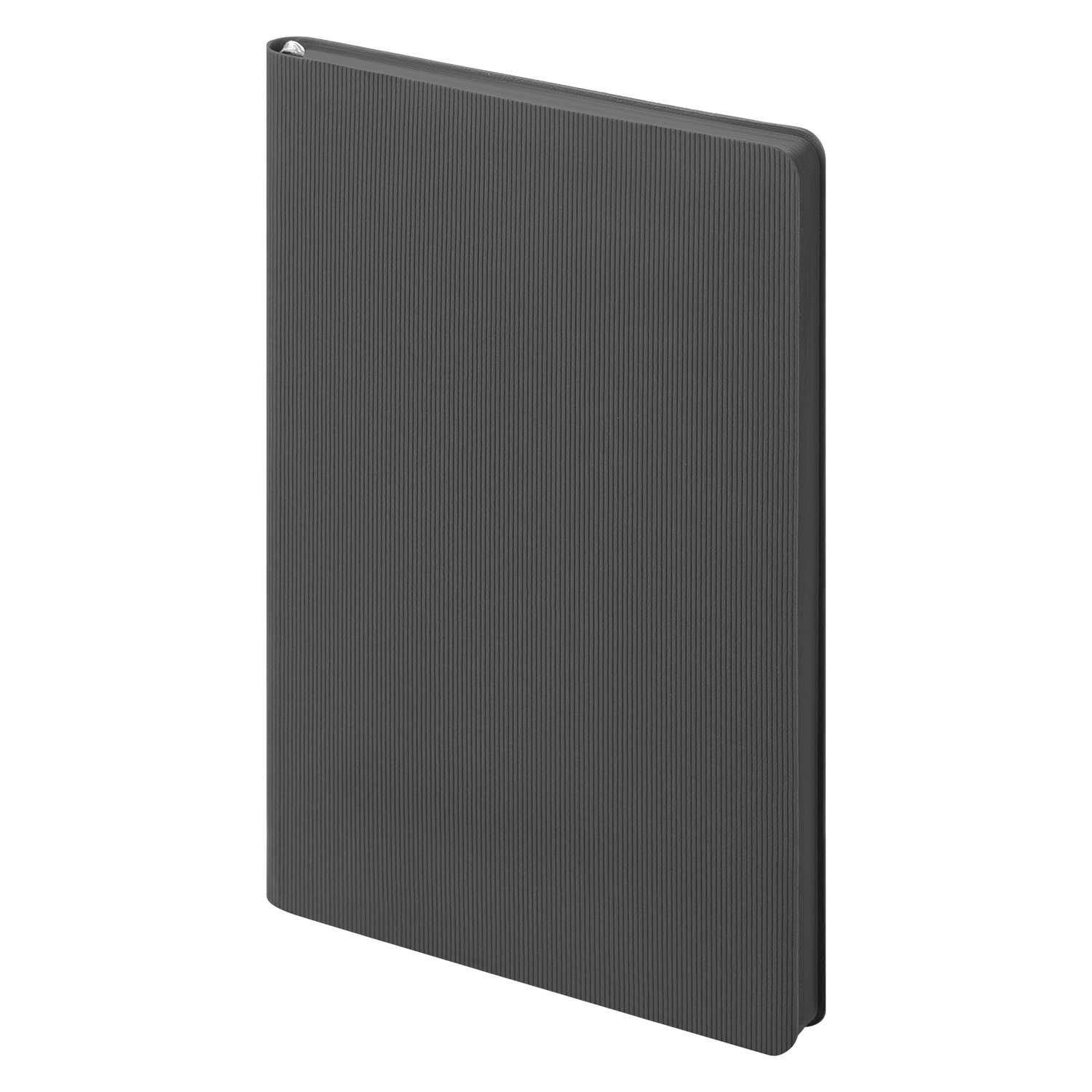 Недатированный ежедневник в стильном лаконичном сером цветовом решении. Цветовая палитра составлена из природных приглушенных тонов. Гибкая матовая обложка со скругленными уголками выполнена из искусственной кожи, имитирующей покрытие в стиле Hi-Tech. Переплетный материал с вертикальным рифлением, бархатистый, со слегка прорезиненным эффектом. За счет интересной рельефной фактуры прослеживается игра цвета при перемене освещения. Цвет – темно-серый, плотный, однородный. Создает органичный тандем с матовыми форзацем и нахзацем серого цвета. Срез матовый, в тон обложки. Страницы со скругленными уголками приятного глазу теплого светло-кремового цвета. Выполнены из гладкого шелковистого офсета. Ежедневник дополнен двойным атласным ляссе из лент серого цвета, имеющих глянцевый отлив. Упаковка: нет (без упаковки, без стикеров).