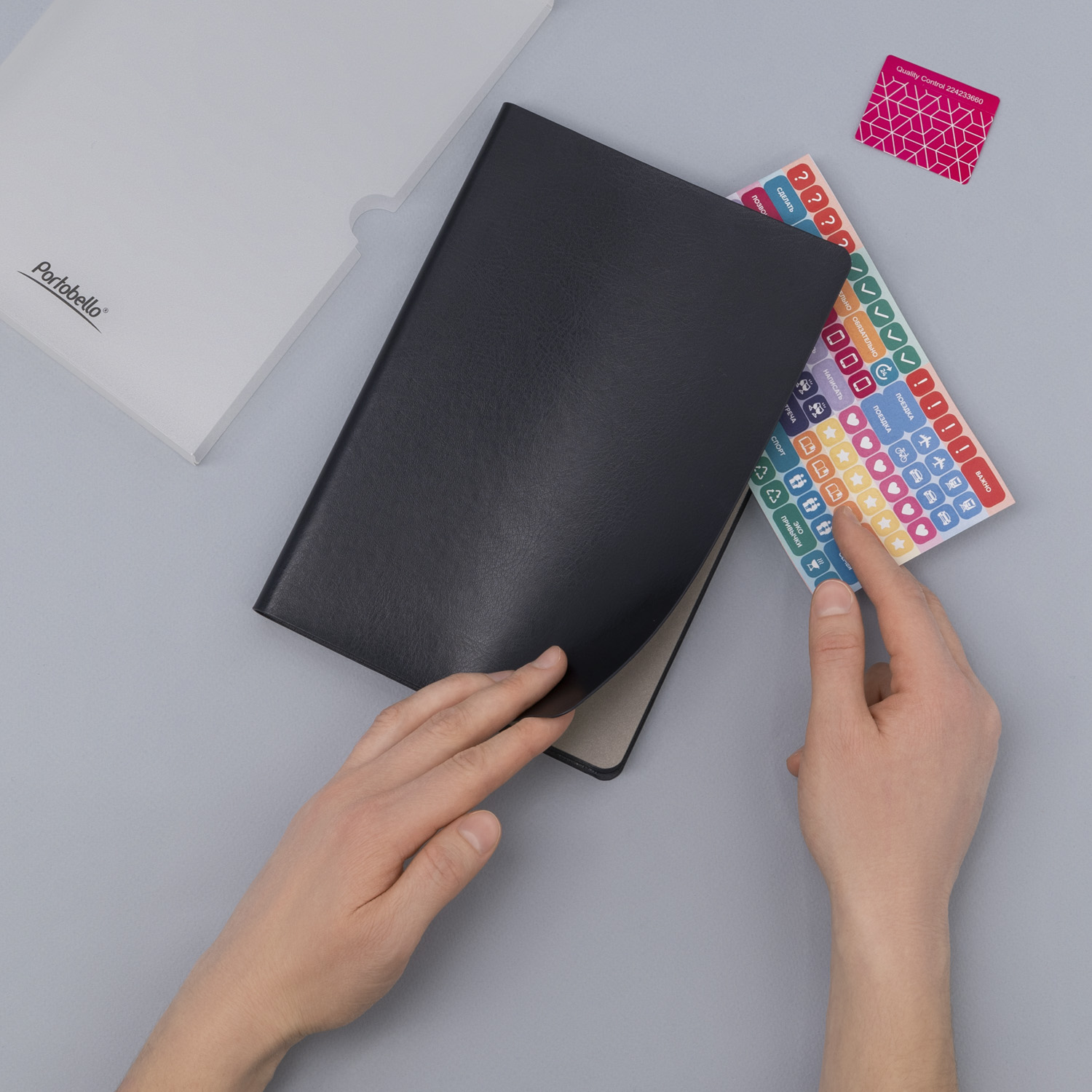 Яркий и одновременно лаконичный недатированный ежедневник Voyage воплощает современный дизайн и изысканный стиль. Гибкая обложка из искусственной кожи с полуглянцевым покрытием и скругленными уголками привлекает внимание своей необычной фактурой – едва заметной сеткой мелких морщинок и прожилок, напоминающих натуральную кожу. Спокойный, естественный цвет с неоднородным мраморным рисунком и плавными переходами от темного к светлому оттенку добавляет обложке глубину и изысканность.