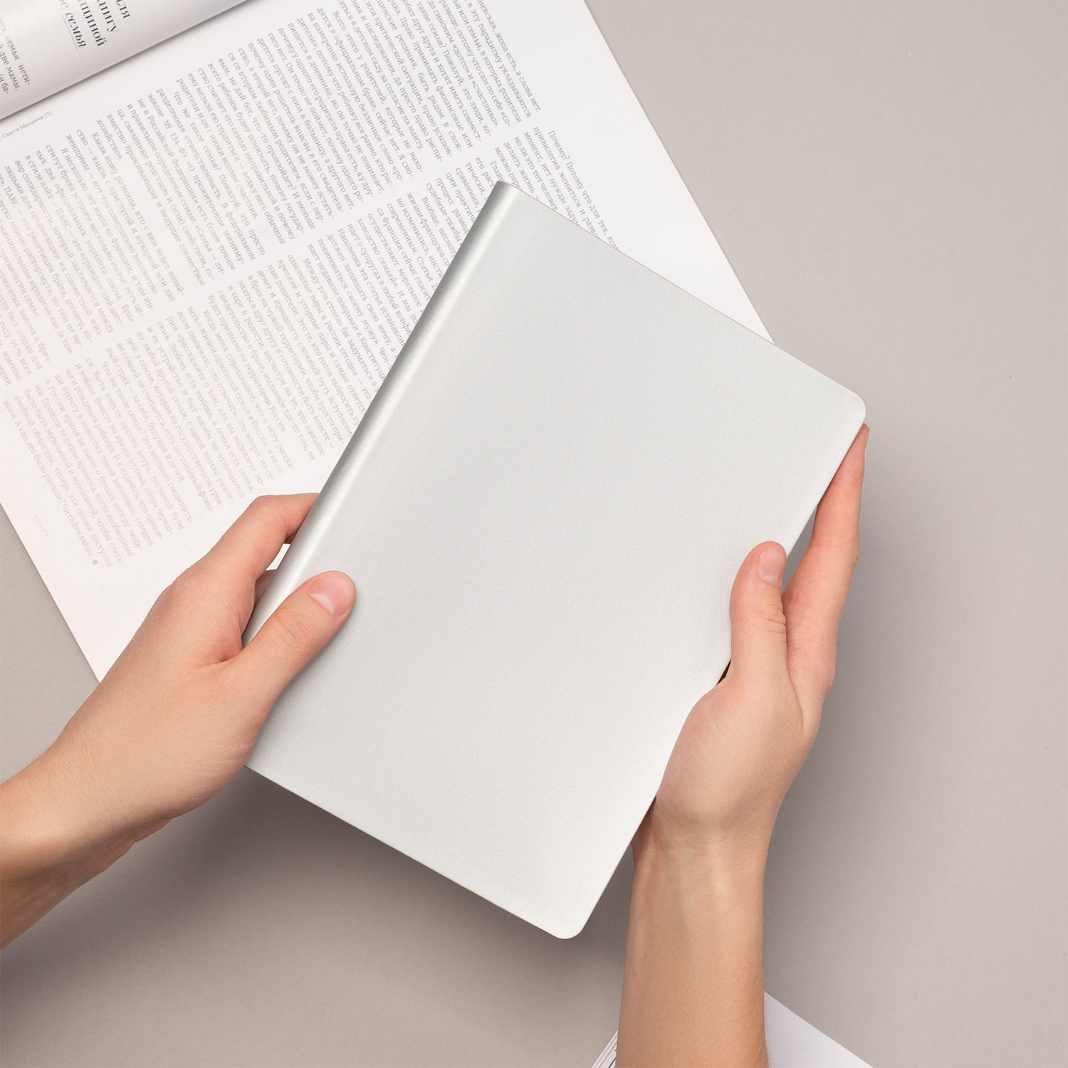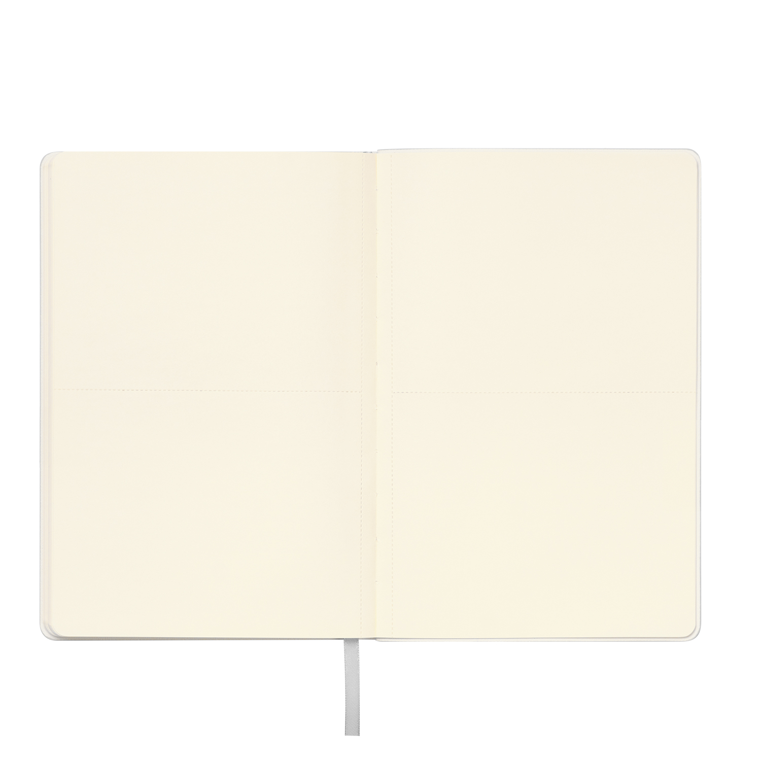Матовое покрытие Soft Touch с деликатным пудровым эффектом подарит неповторимое тактильное удовольствие. А кремовые форзац, нахзац и срез блока создадут гармоничное обрамление для гладких шелковистых страниц кремового оттенка. Элегантное атласное ляссе поможет вам легко ориентироваться в записях.