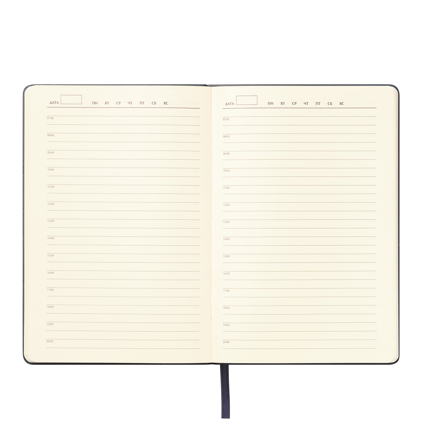 Кремовые форзац, нахзац и срез создают гармоничное сочетание с гладкими, шелковистыми страницами того же нежного оттенка. Удобное атласное ляссе поможет вам быстро найти нужную страницу. Этот ежедневник — не просто инструмент для планирования, а изысканный аксессуар, который подчеркнет ваш безупречный вкус.