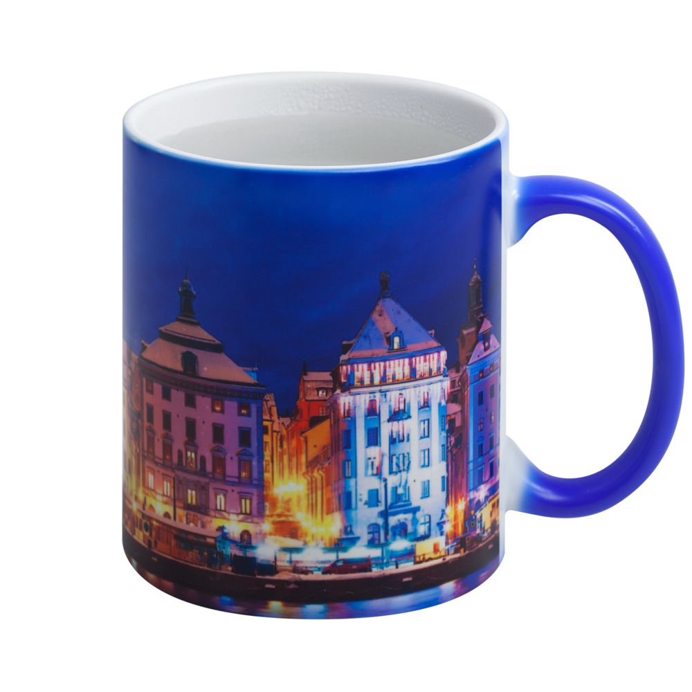 Кружка «Хамелеон» меняет свой цвет, стоит только налить в нее горячий напиток. При нагревании цветное сублимационное покрытие кружки становится прозрачным — и принт выглядит еще ярче на светлом фоне. Такой эффект достигается благодаря термочувствительной краске на основе жидких кристаллов и дает много возможностей для создания оригинального дизайна обычной на вид кружки.