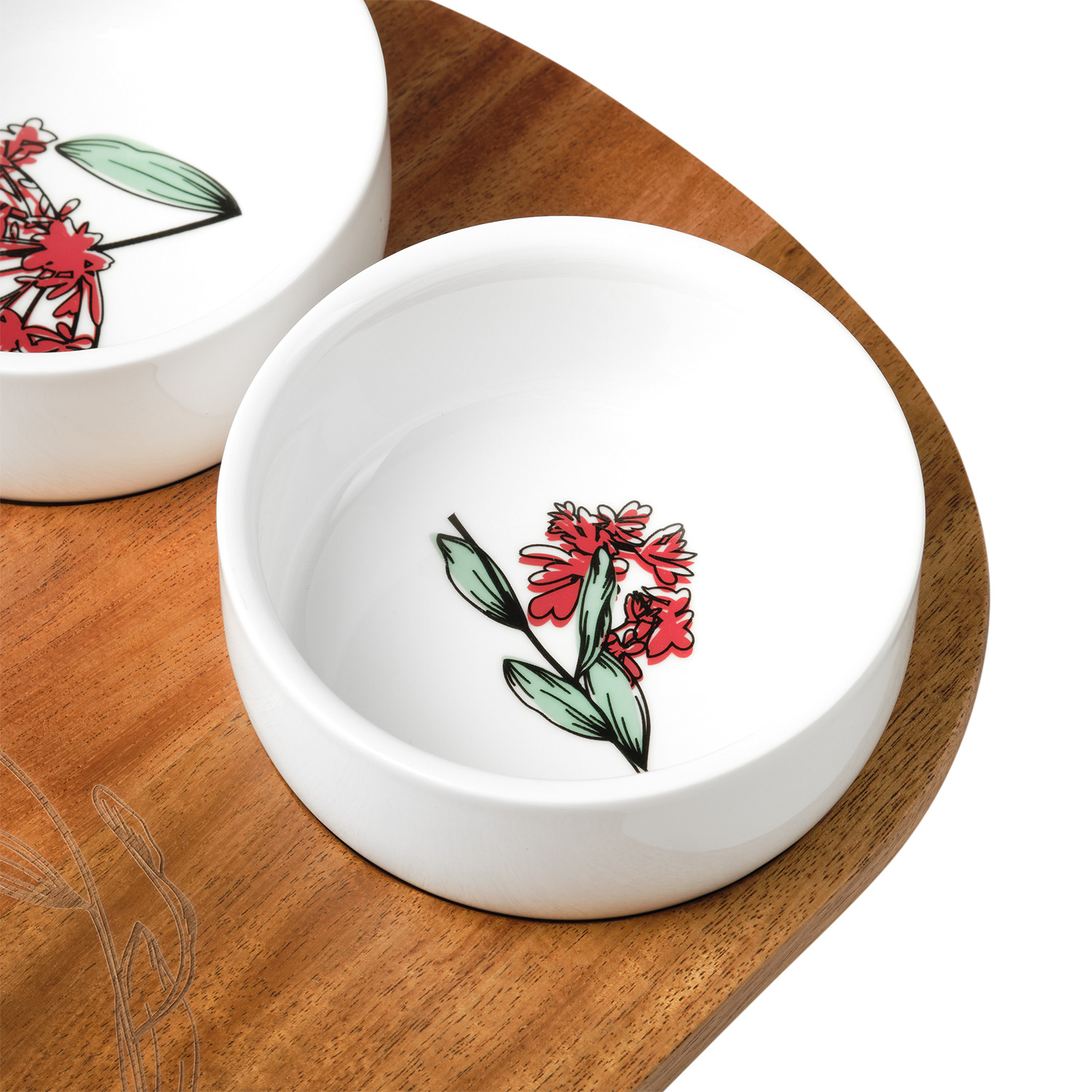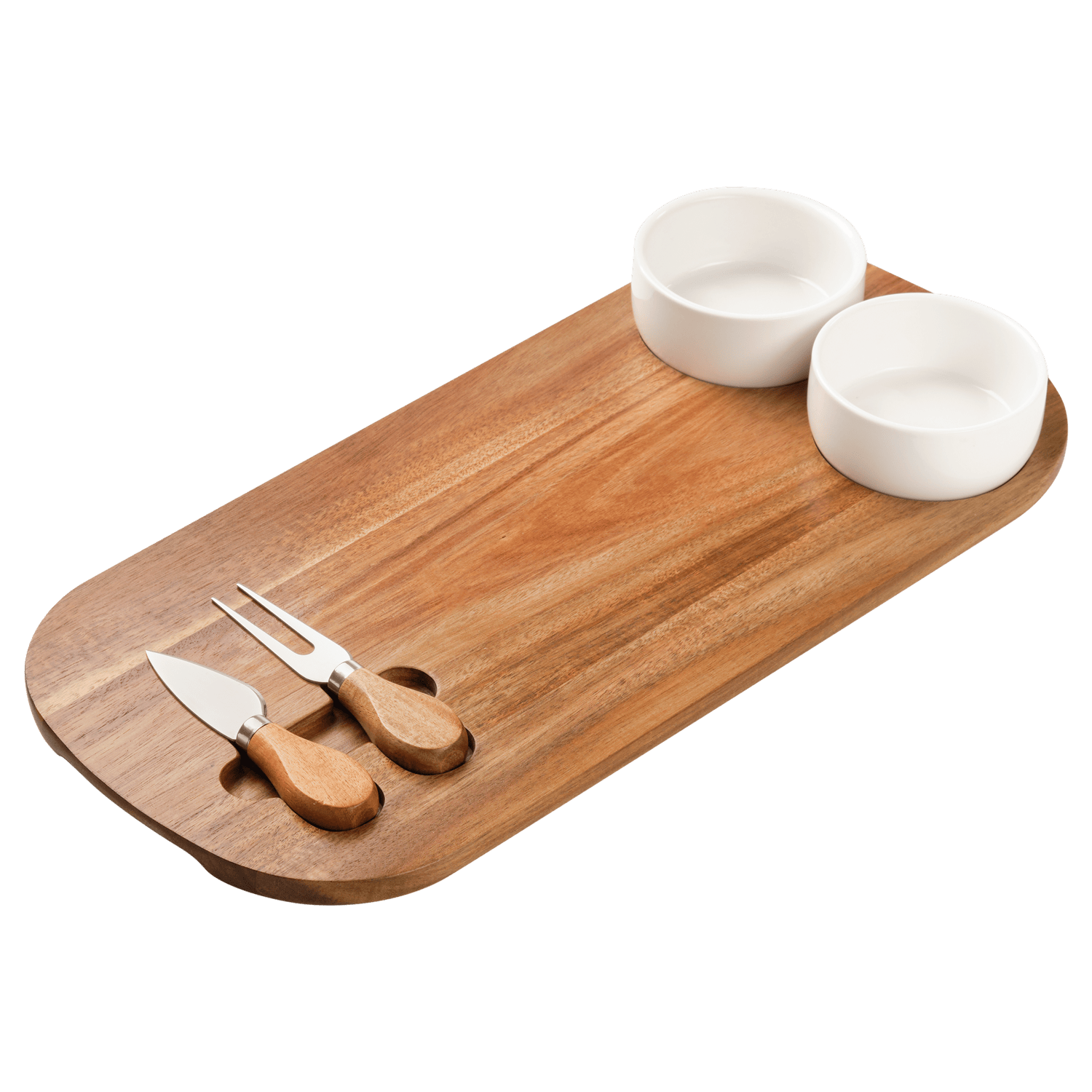 Набор предназначен для сервировки сыров и других закусок, а керамические соусницы идеально подойдут для меда, варенья или орехов.