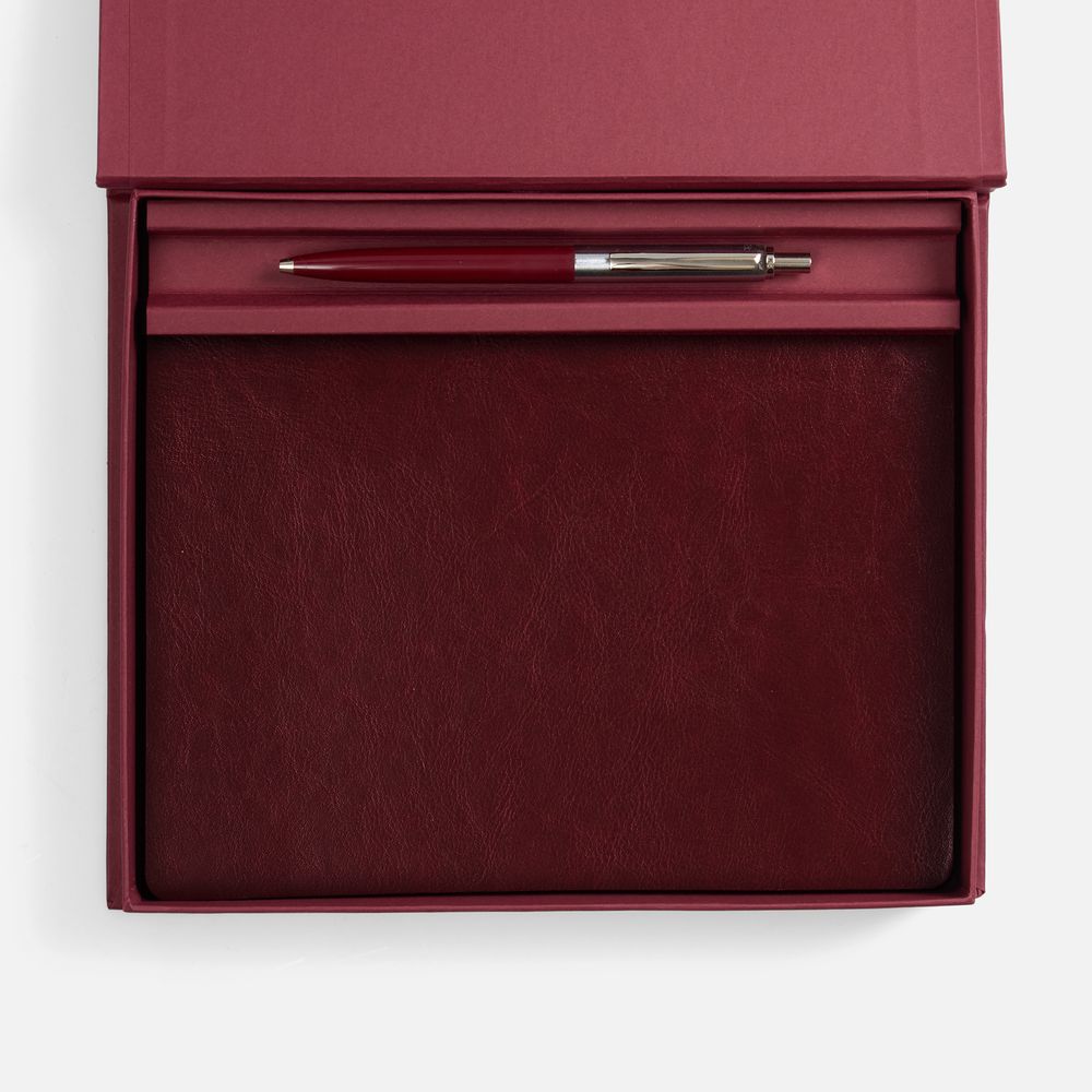 Артикул 20128.15 Цвет Бордовый, Серебристый Материал Искусственная кожа, Металл, переплетный картон Размер 23х18,5х4 см -