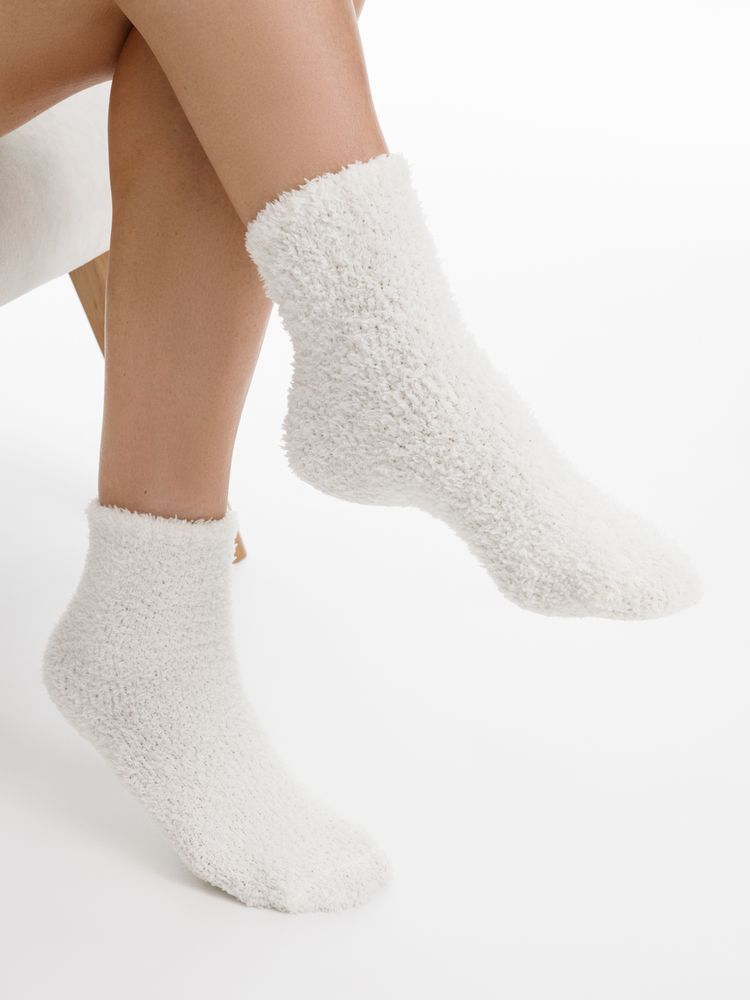 Пушистые носки Flaum — это не просто аксессуар, а настоящее объятие для ног, которое подарит заботу и уют в любое время года. Удлиненная форма и согревающий материал не дают ногам замерзнуть, а мягкая текстура приятно ощущается на коже, создавая максимальный комфорт даже в самые холодные дни.