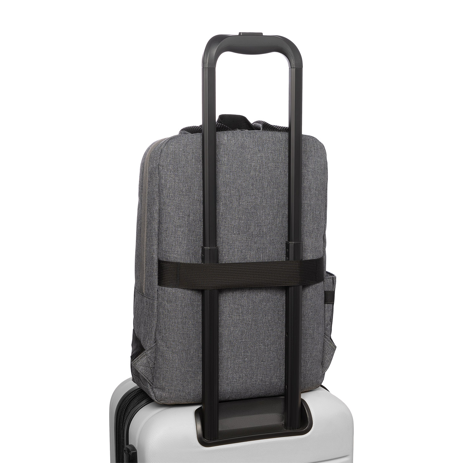 Компактный городской рюкзак Forst. С внешней стороны рюкзака размещены два кармана на молнии: один небольшой, который можно использовать для телефона, ключей, проездных карточек и других мелочей, другой – вместительный, для более крупных предметов.