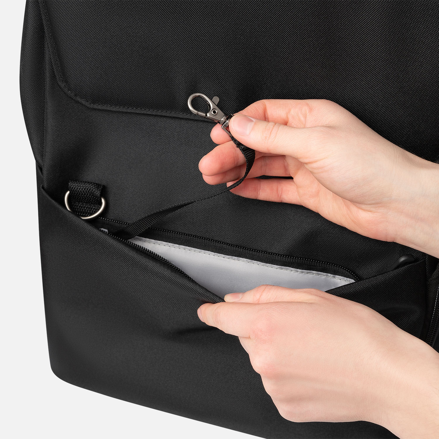 Кнопки по бокам основного отделения помогают регулировать объем. Багажная лента, мягкие плечевые ремни с дышащей подкладкой и карабины внутри кармана и снаружи делают Marco еще более функциональным и удобным для повседневного использования.