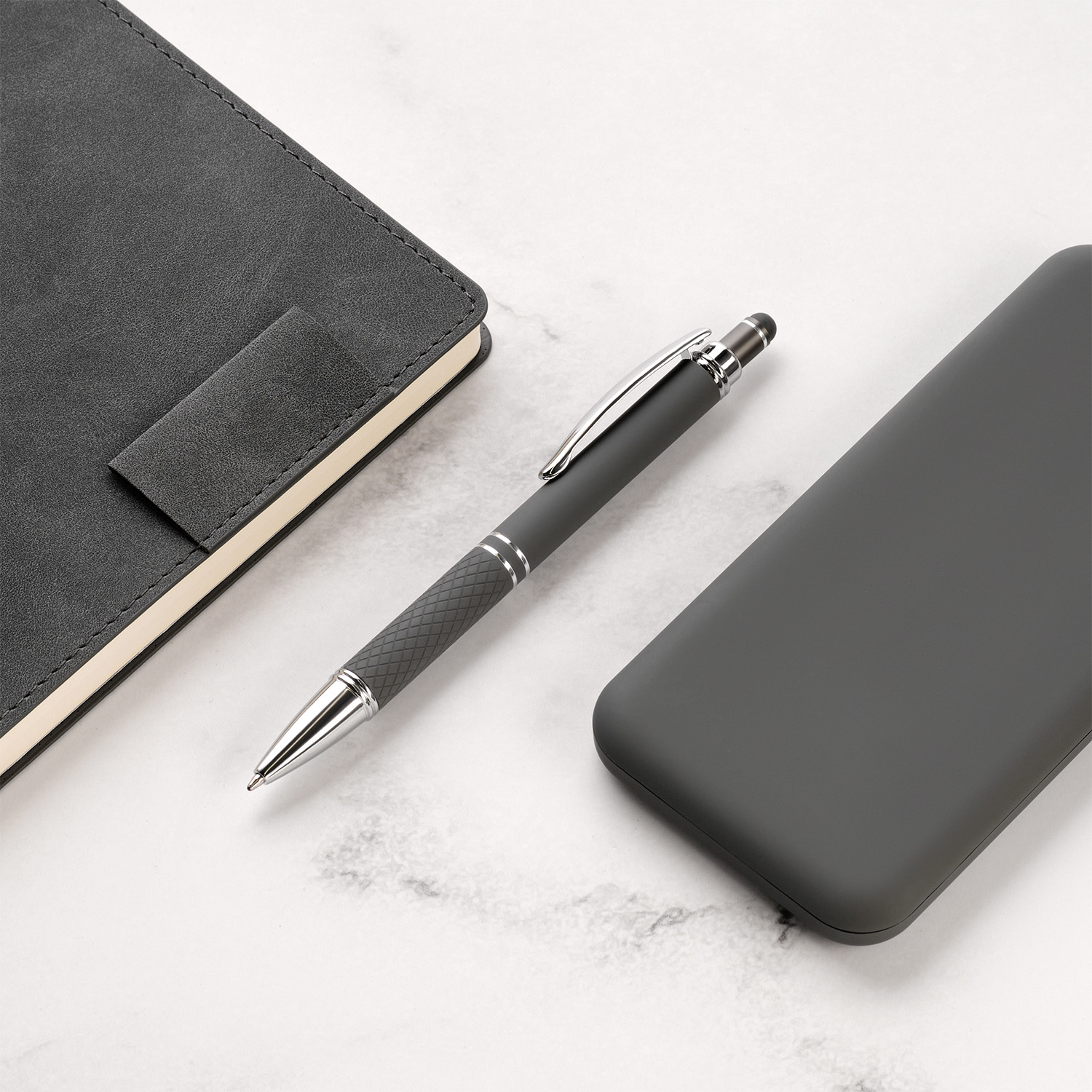Ручка оснащена стилусом в цвет корпуса для работы с сенсорными экранами. Декоративная обработка основания ручки, благодаря которой ручку еще удобнее держать в руке.