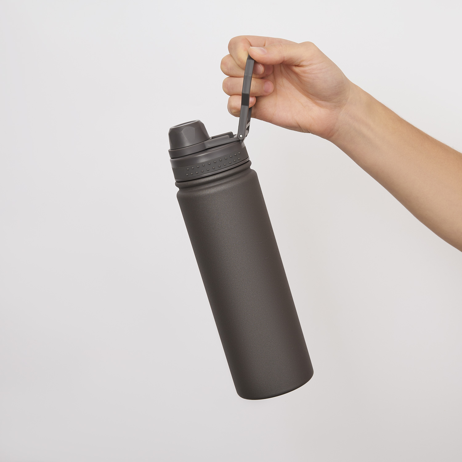 Бутылка оснащена съемной трубочкой. Удобная ручка на крышке облегчает переноску и позволяет прикрепить термобутылку к рюкзаку или сумке.