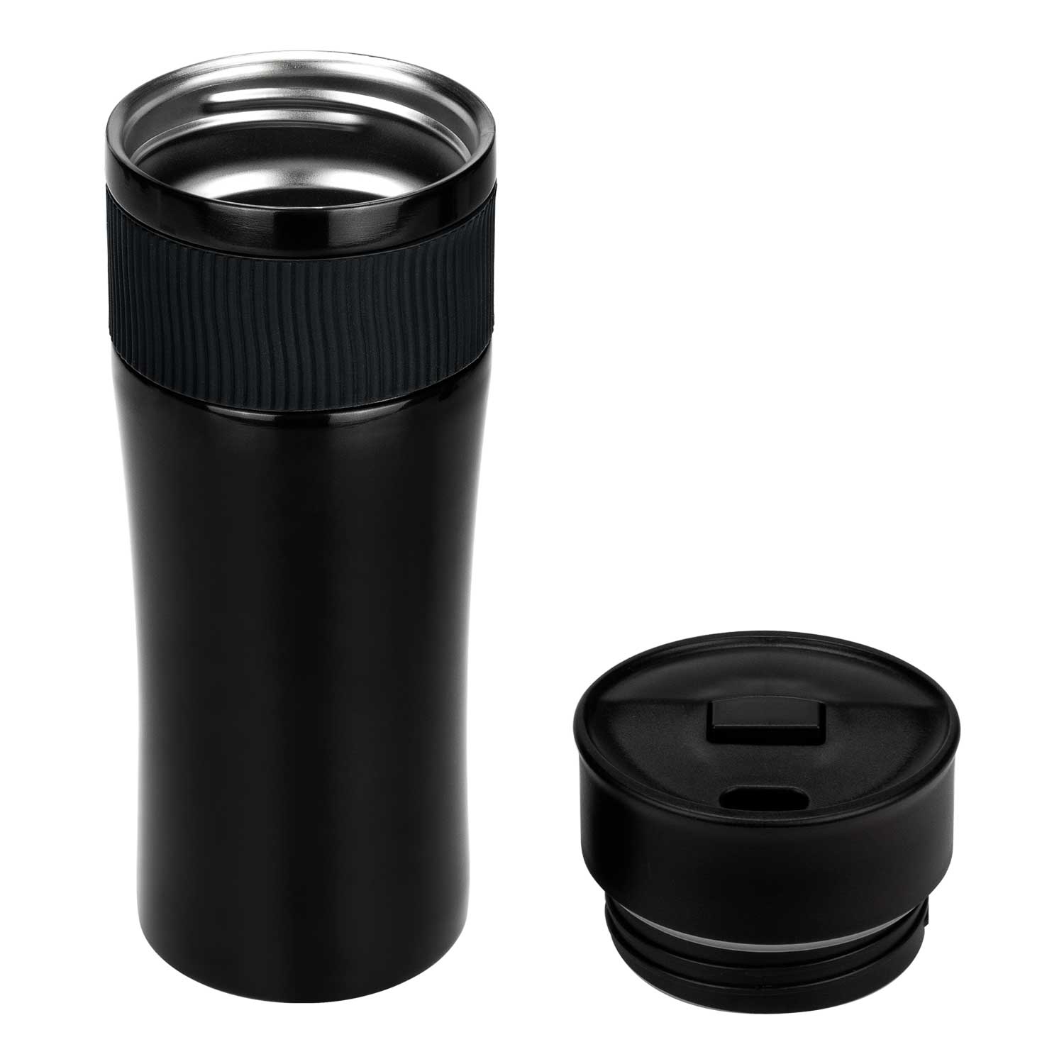 Термокружка с системой OneHand Open позволяет пользоваться кружкой одной рукой. Силиконовый манжет на корпусе не позволит кружке выскочить из руки в самый не подходящий момент.