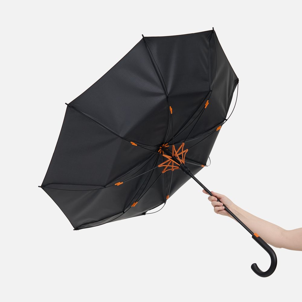Легкий и невероятно прочный каркас из стеклопластика не боится порывов ветра. Сдержанный дизайн оживляет яркая деталь: цветные акценты на каркасе видны только при раскрытии зонта.