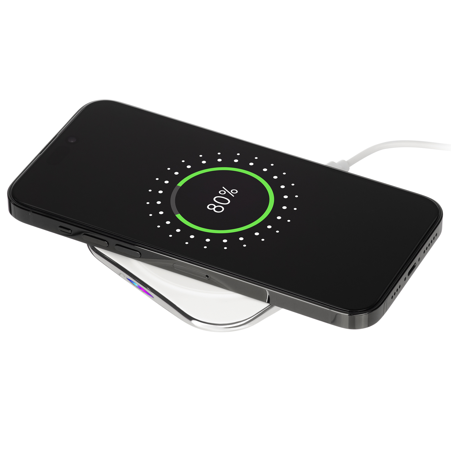 Беспроводное зарядное устройство имеет стильный и современный дизайн, который идеально дополнит любое рабочее пространство.