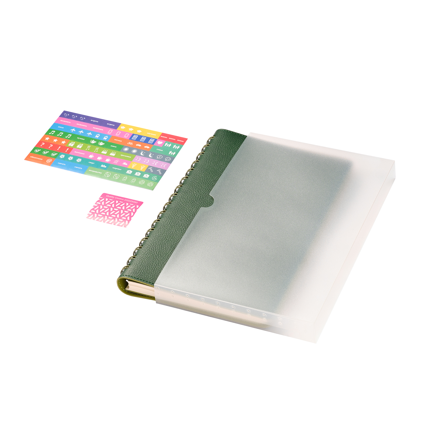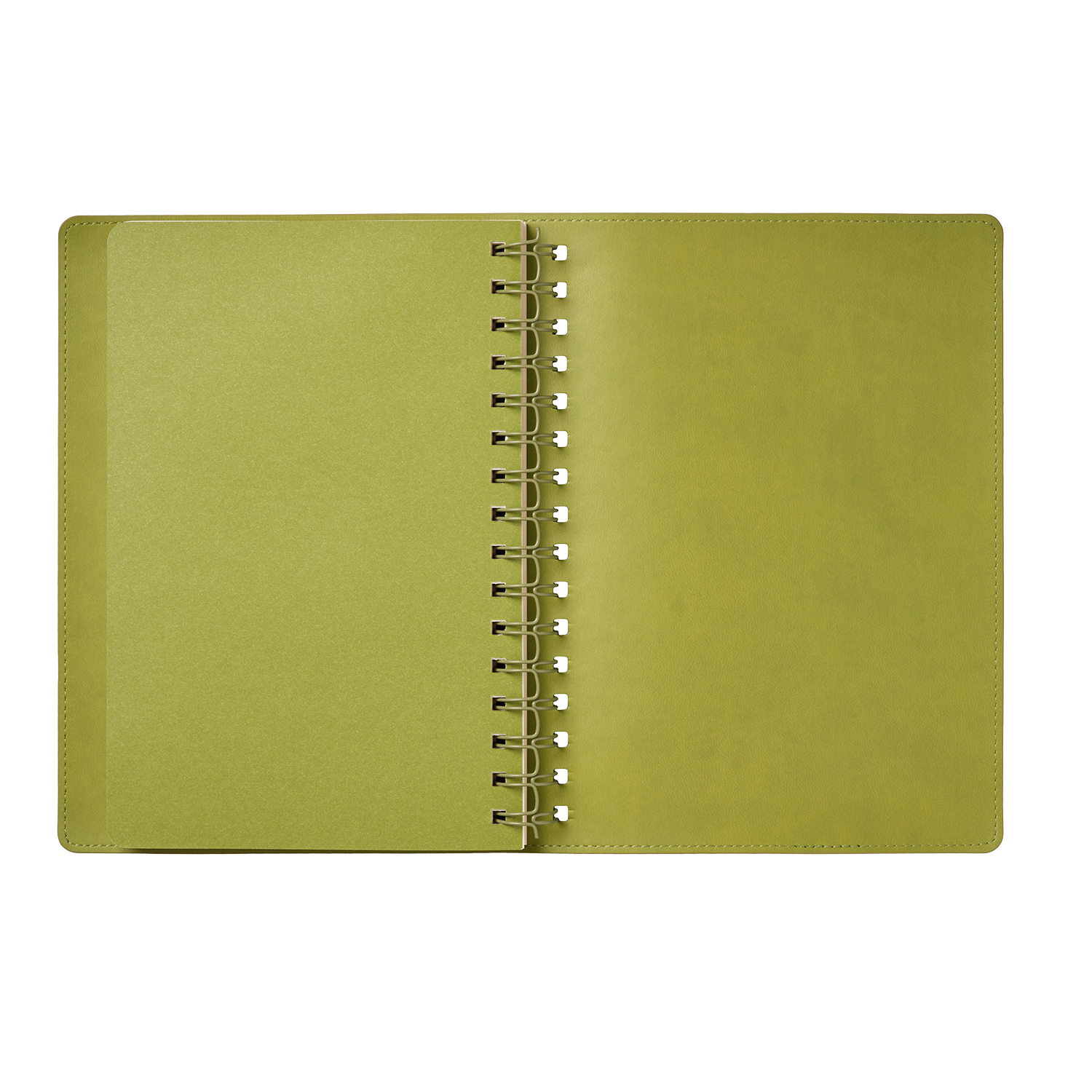 Внутренний материал обложки – Latte – бархатистый, мелкозернистый, однородного салатового цвета.