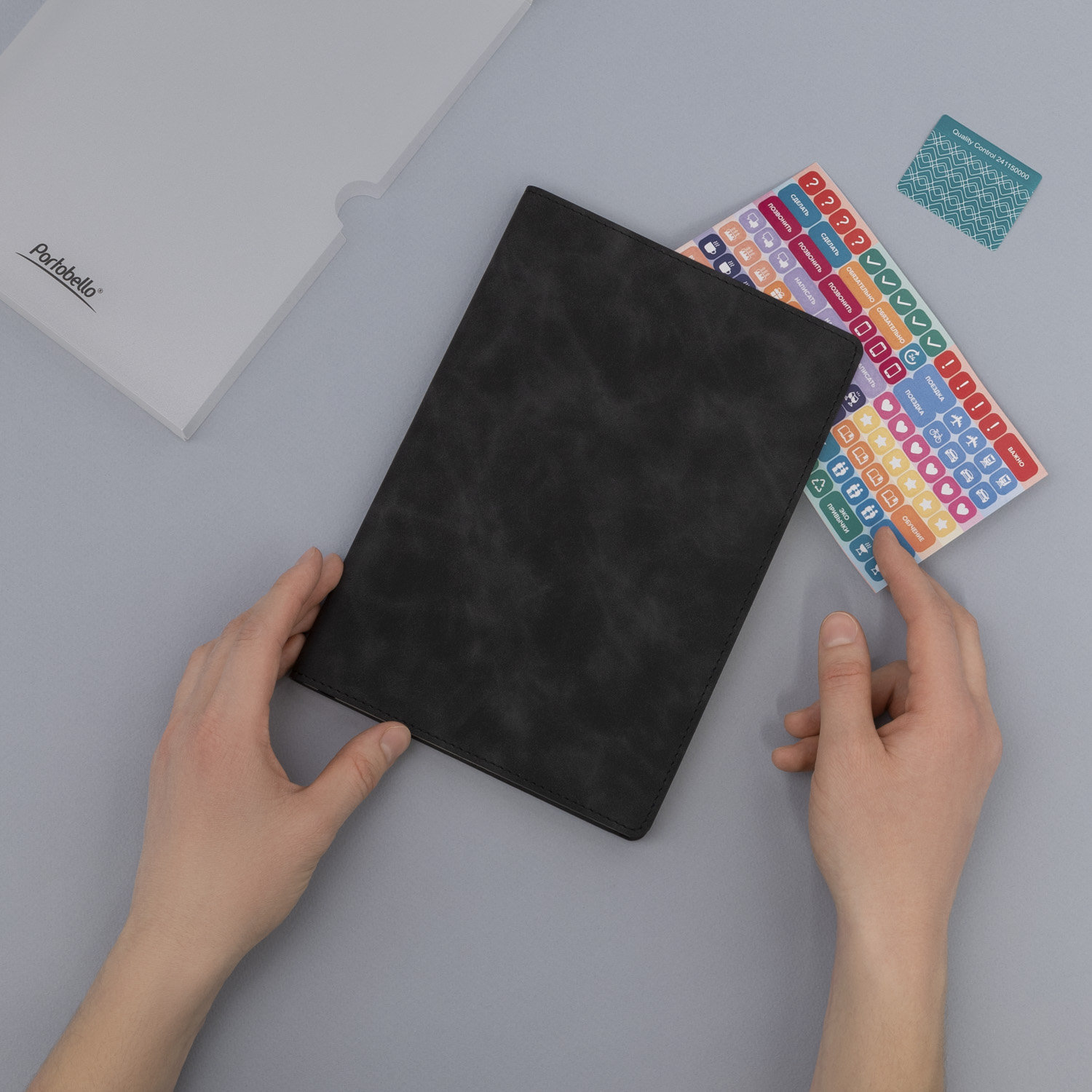 Изысканный недатированный ежедневник Verona станет вашим стильным спутником в мире планирования и идей. Мягкая, приятная на ощупь обложка из высококачественной искусственной кожи с шелковистой текстурой, напоминающей замшу, подарит вам настоящее тактильное удовольствие. Аккуратная прошивка по периметру в тон обложки и скругленные уголки добавляют ежедневнику изысканности и шарма.