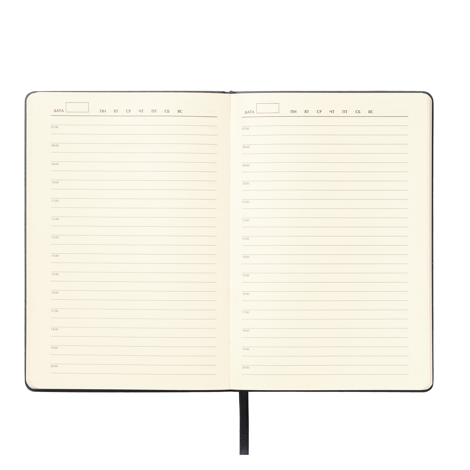 Кремовые форзац, нахзац и срез создают гармоничное сочетание с гладкими, шелковистыми страницами того же нежного оттенка. Удобное атласное ляссе поможет вам быстро найти нужную страницу. Этот ежедневник — не просто инструмент для планирования, а изысканный аксессуар, который подчеркнет ваш безупречный вкус.