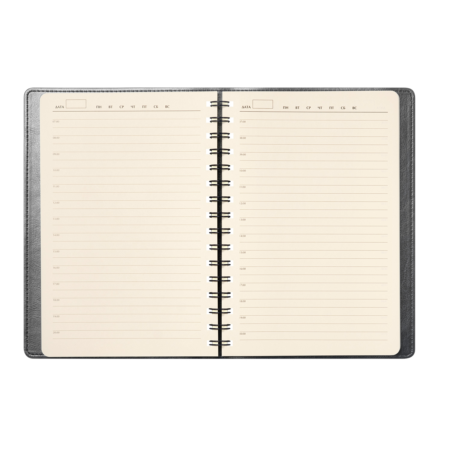 Надежная полускрытая пружина в цвет обложки обеспечивает удобство использования и долговечность. Этот ежедневник не только поможет вам эффективно планировать дела, но и станет стильным аксессуаром, подчеркивающим ваш индивидуальный стиль.
