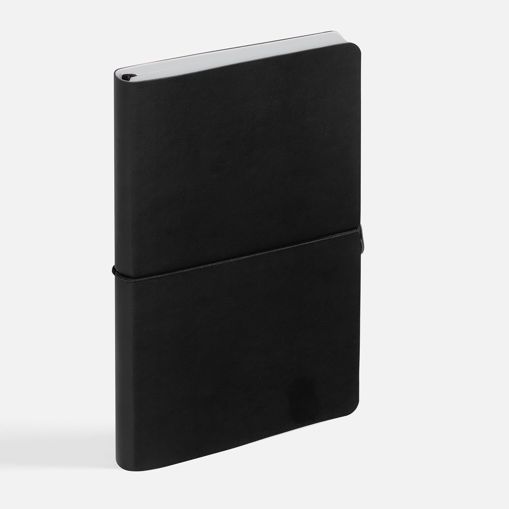 Ежедневник с гибкой обложкой, выполнен из материала Waltz, черный АА, дополнен ляссе в цвет обложки с металлическим шильдом.