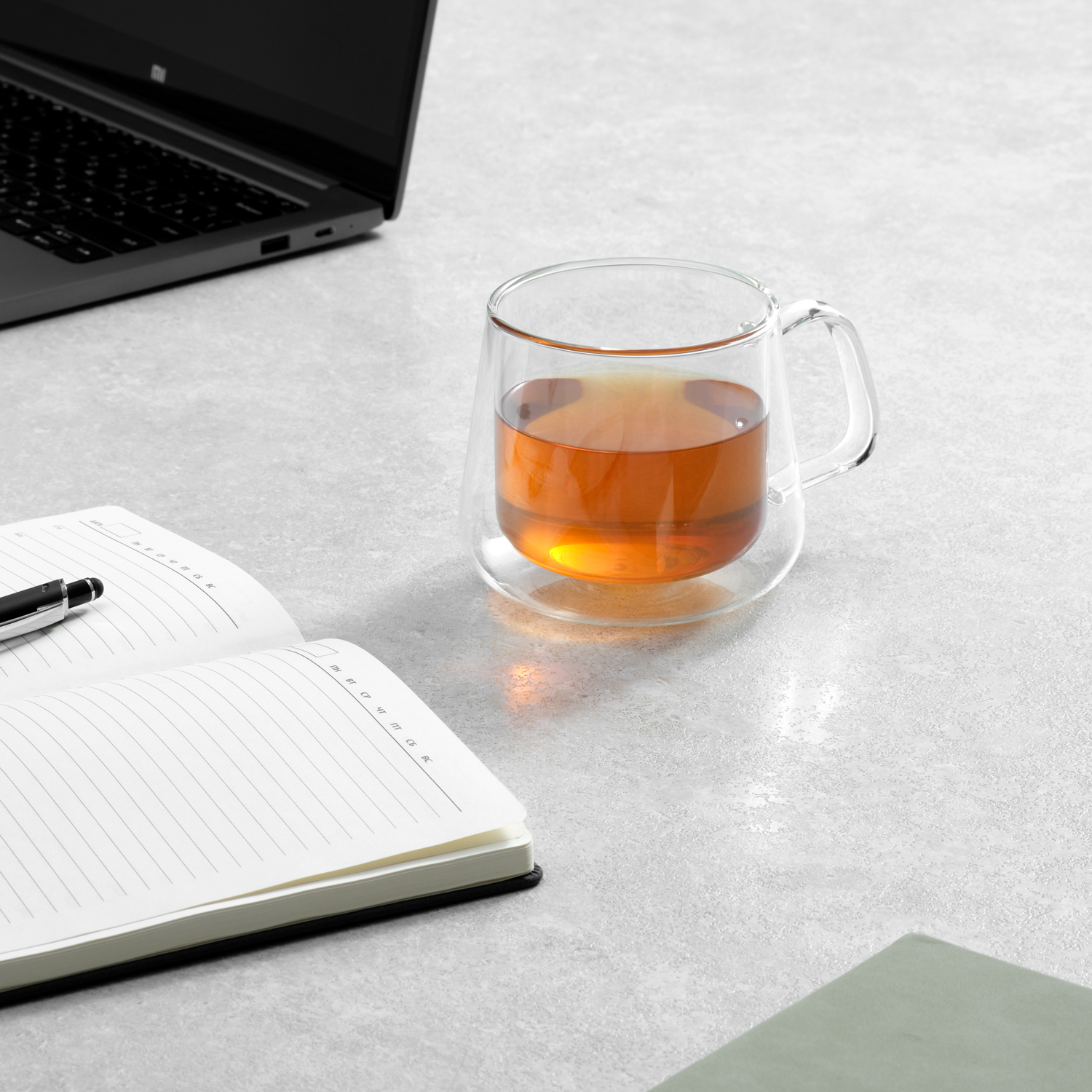 Кружку удобно держать в руке благодаря комфортной ручке, а внешние стенки не нагреваются, даже если налить свежезаваренный чай.