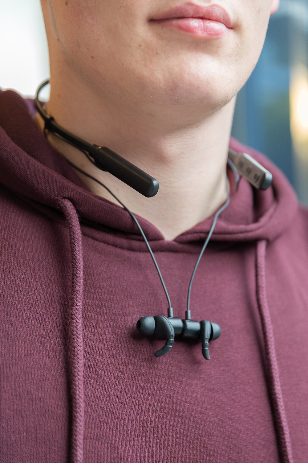 Легкие наушники-вкладыши с магнитными вставками и креплением для шеи, обеспечивающим максимальный комфорт при использовании. Bluetooth версии 4.2 для гладкого подключения с рабочего расстояния 10 метров. Встроенный аккумулятор емкостью 120 мАч позволяет слушать музыку до 6 часов на одном заряде. Корпус из прочного ABS-пластика и полиуретановые подушечки для ушей.