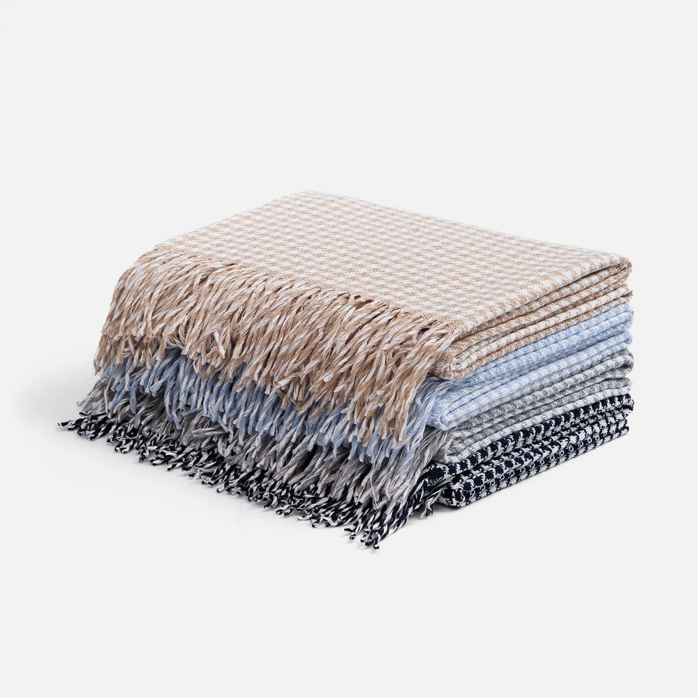 Смешанный состав создает идеальный баланс между мягкостью и износостойкостью изделия, а средняя плотность делает плед достаточно теплым для прохладных вечеров, но при этом легким и удобным.
